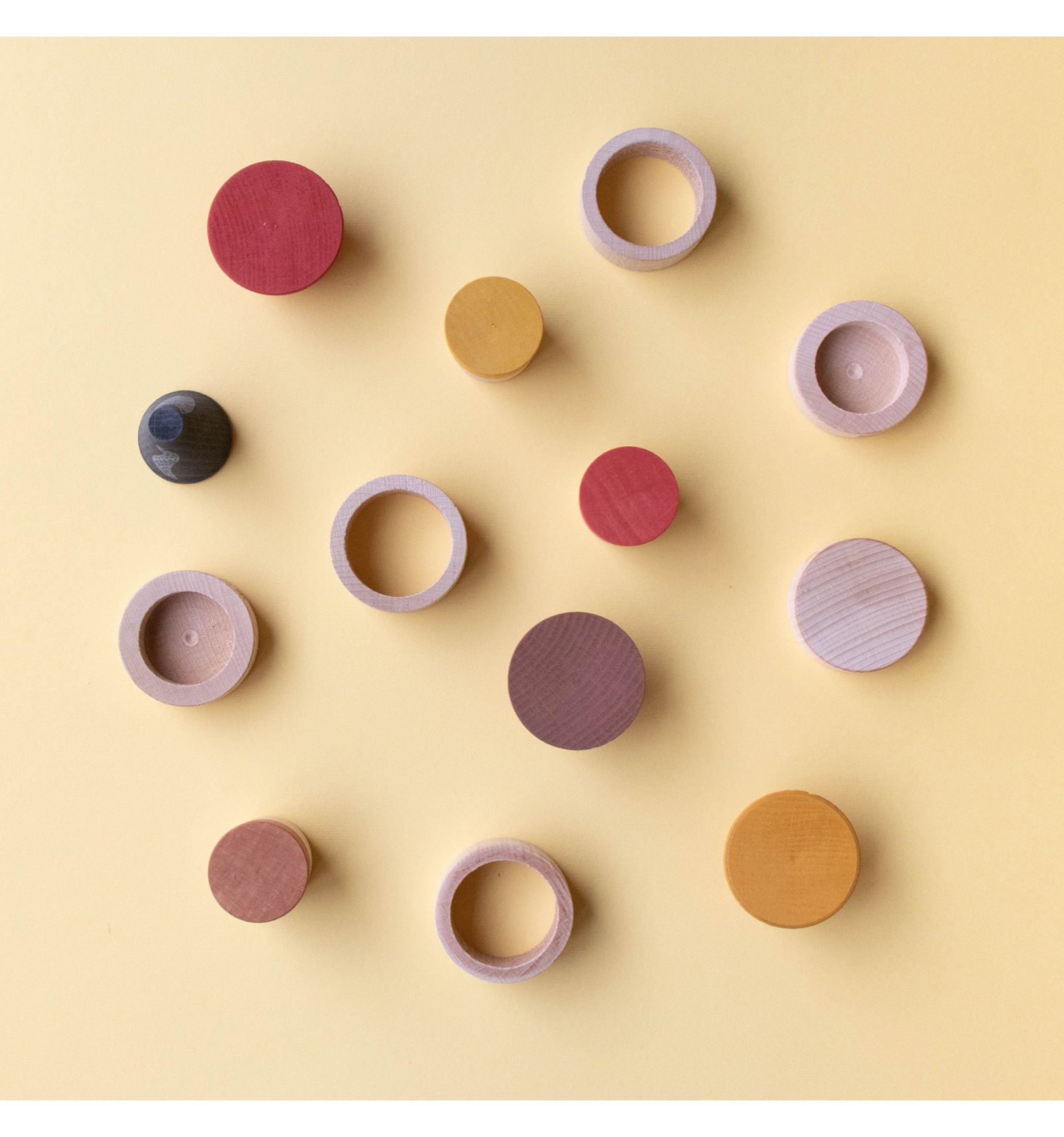 Disseny únic: peces de formes i colors suaus que conviden al joc simbòlic i a l'aprenentatge.