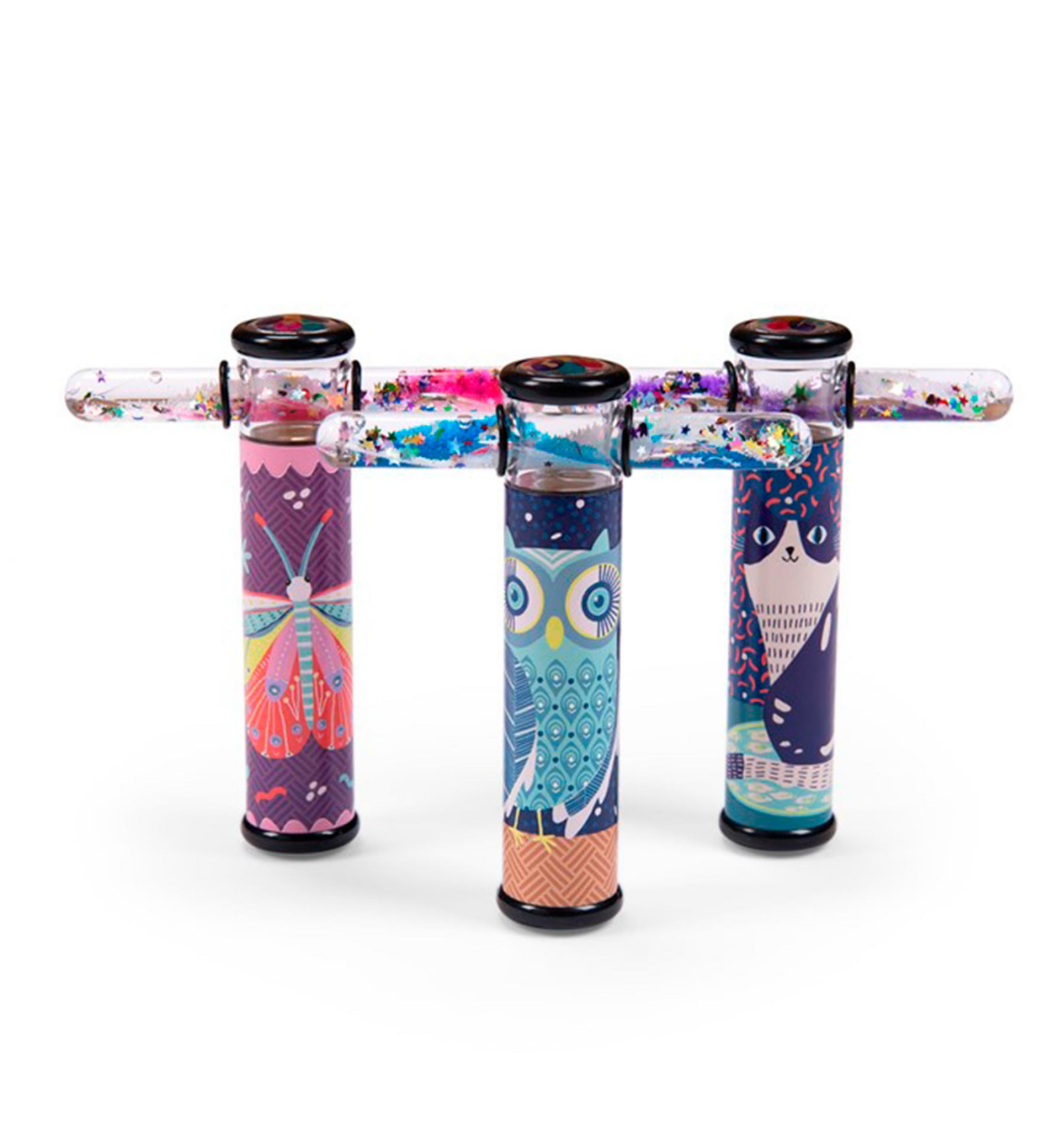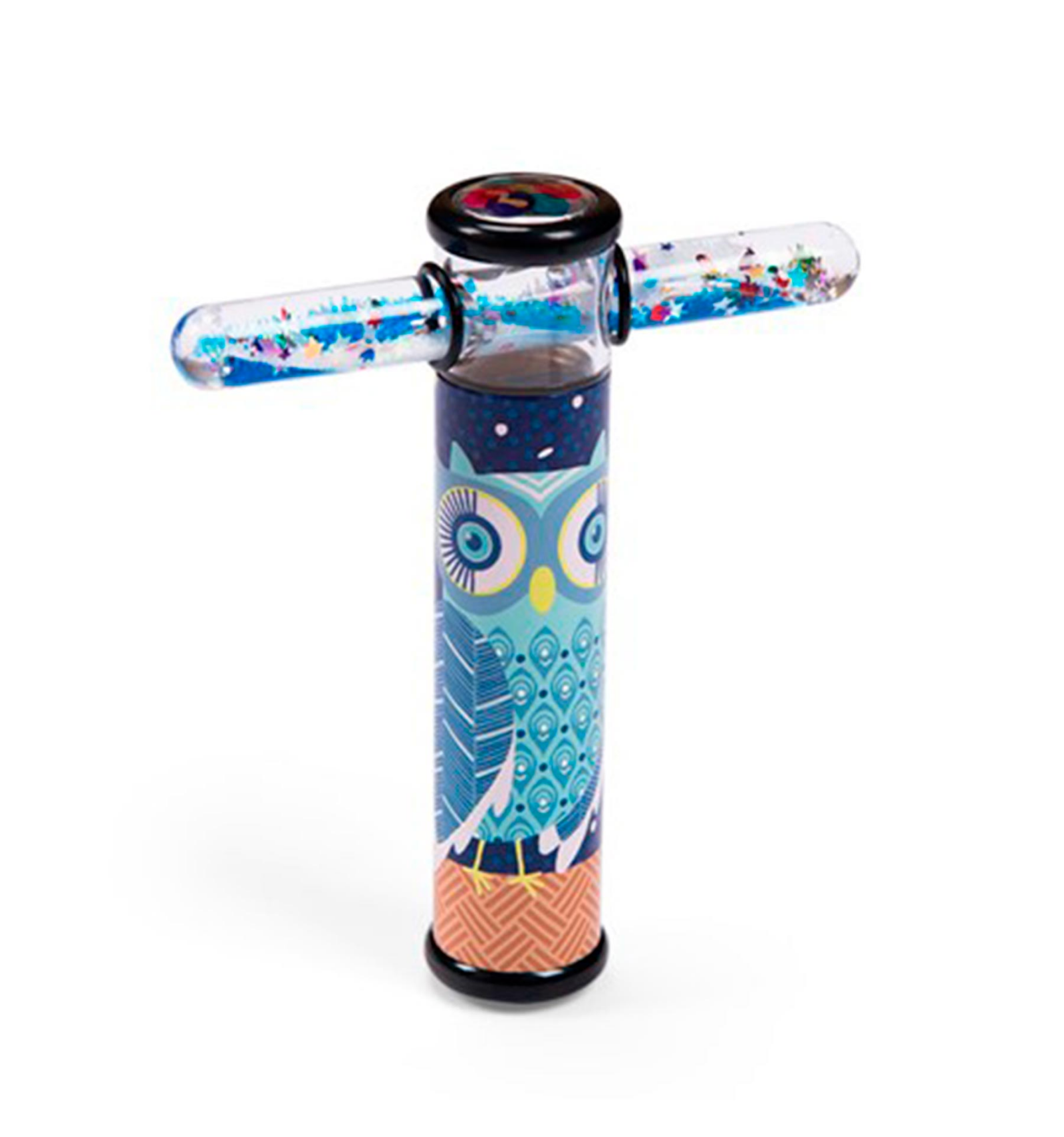 El Calidoscopi fosforescent de Moulin Roty és una joguina captivadora que ofereix una experiència visual fascinant. Simplement, sostingues el tub davant dels teus ulls, gira'l i observa com les formes i colors es multipliquen infinitament. Quan s'exposa al sol, emmagatzema la llum i brilla a la foscor, proporcionant hores de diversió i sorpresa per a nens i nenes.