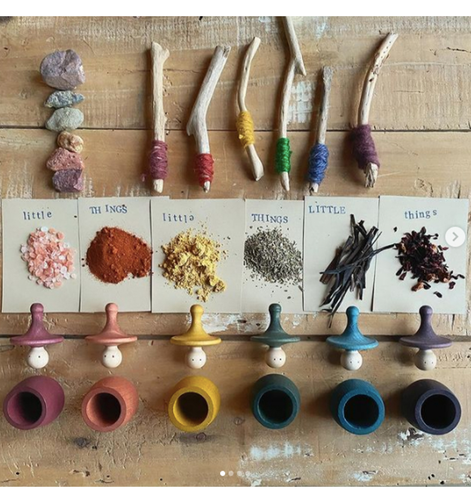 Sense manuals d'instruccions, els kits de Grapat volen incentivar el joc lliure i creatiu, acostant-nos a la naturalesa i al món de la fantasia. Realitzat amb fusta (faig i bedoll) de boscos controlats i pintats a mà amb tints vegetals, el material de joc sempre es viu, sempre transmet, explica històries només mirar-lo, i fa sentir.