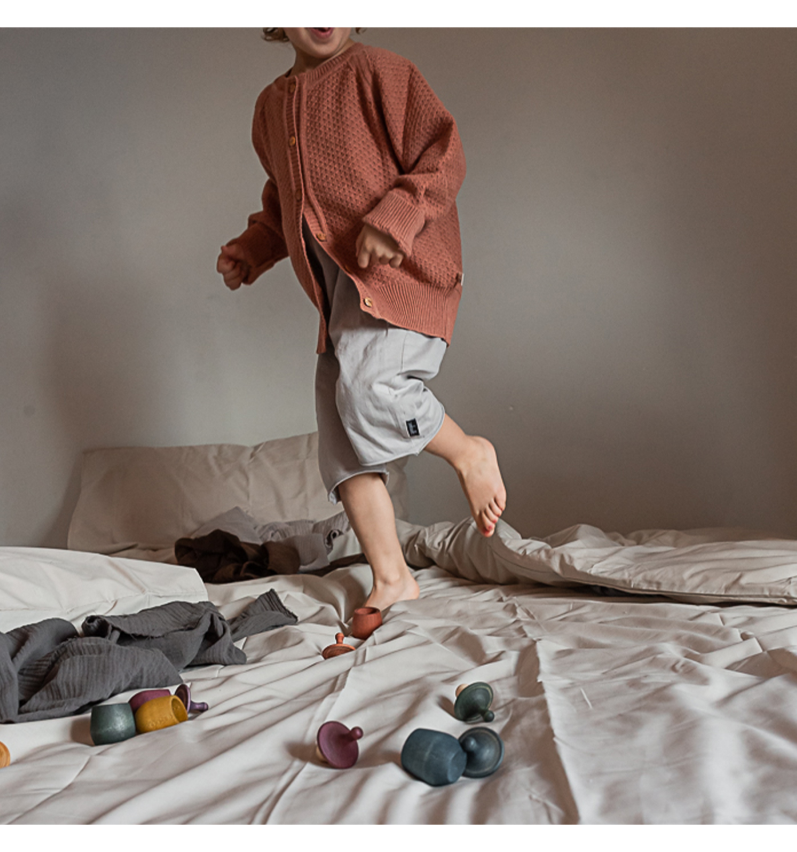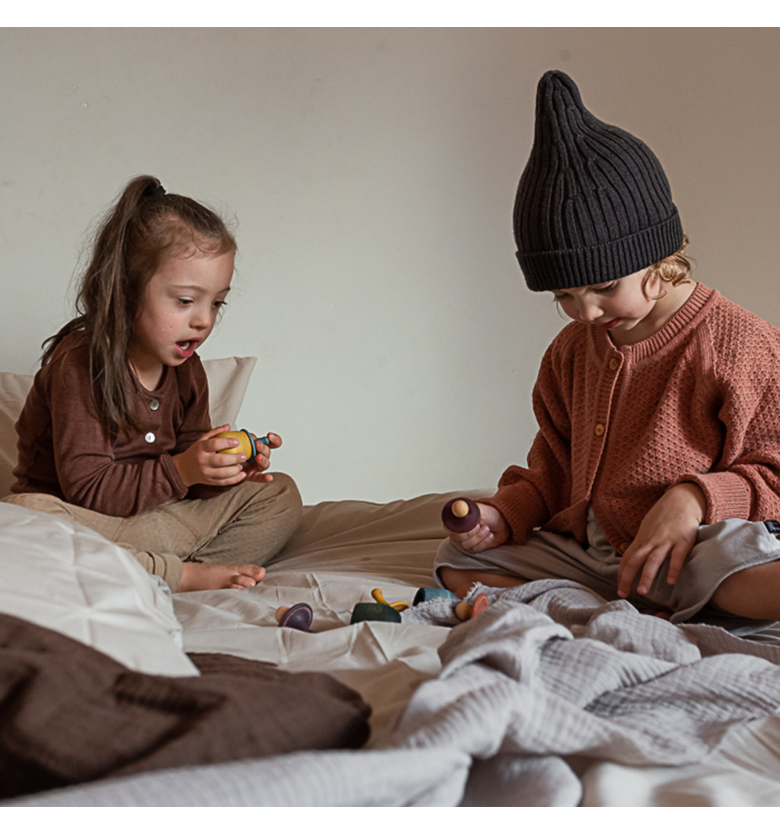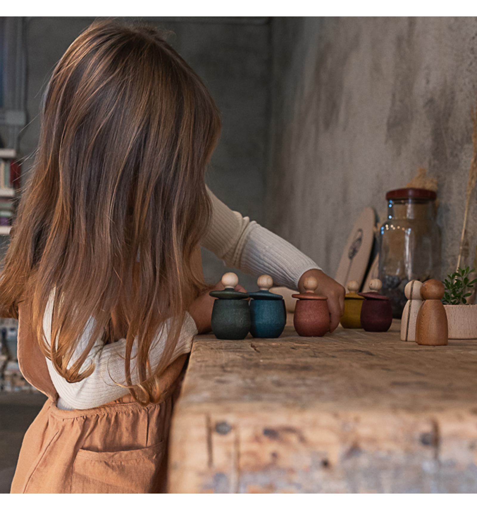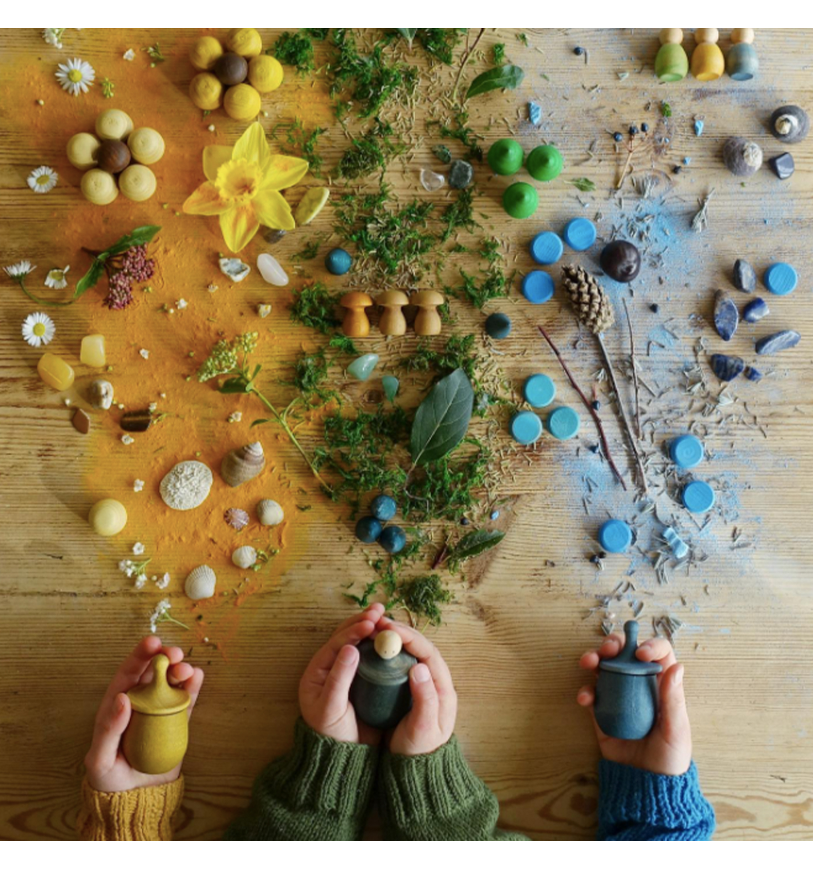 Sense manuals d'instruccions, els kits de Grapat volen incentivar el joc lliure i creatiu, acostant-nos a la naturalesa i al món de la fantasia. Realitzat amb fusta (faig i bedoll) de boscos controlats i pintats a mà amb tints vegetals, el material de joc sempre es viu, sempre transmet, explica històries només mirar-lo, i fa sentir.