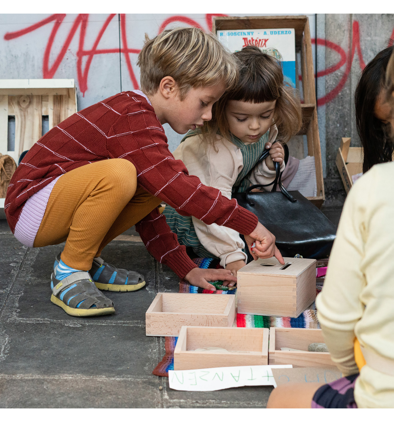 Per això proposa un material sense instruccions, un material obert que convida a la creació de petits mons (o mini mons) diversos i fantàstics. Un material que afavoreix el joc lliure i no estructurat.