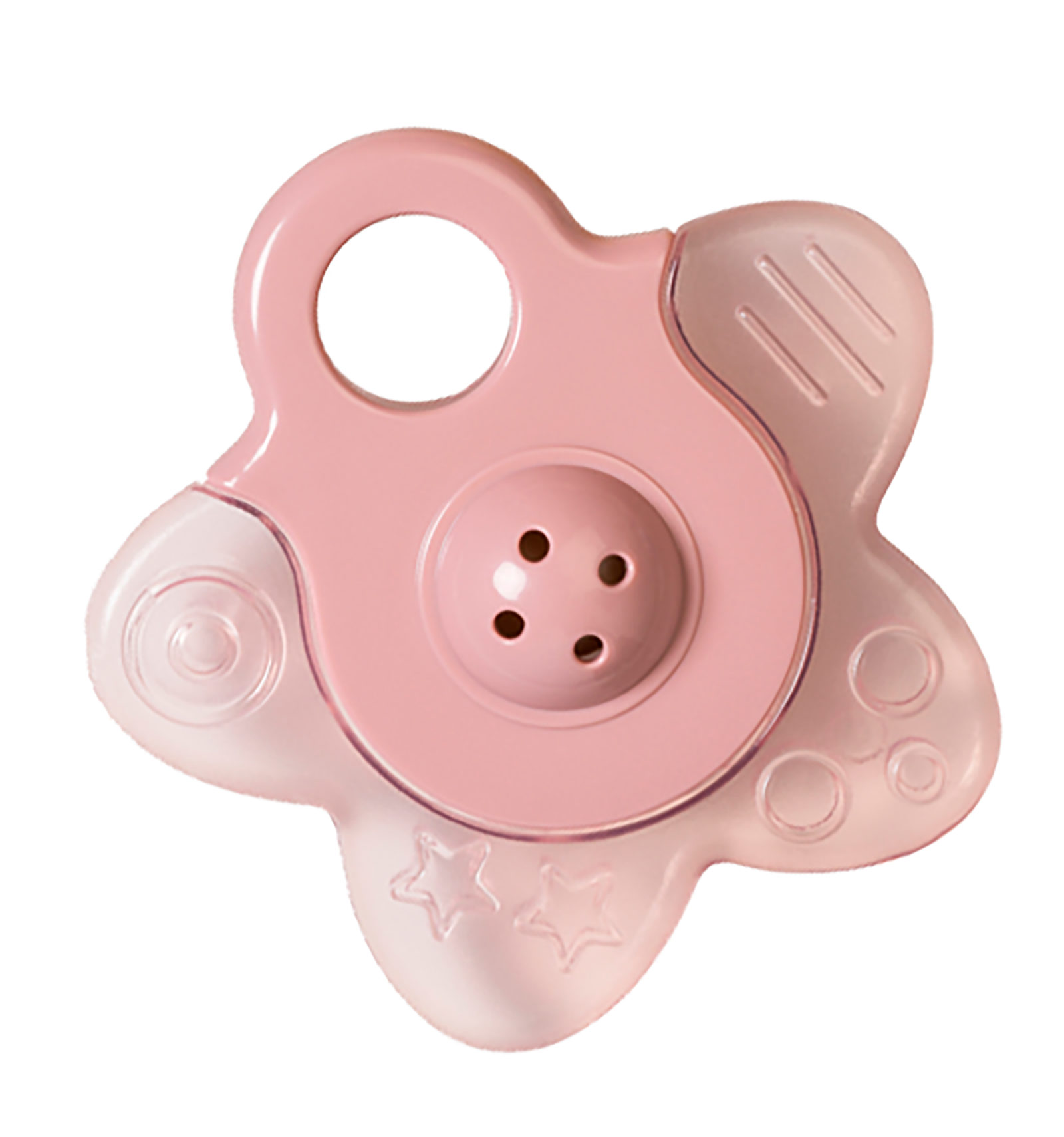 Alleugereix el dolor de la sortida de les dents amb aquest mossegador sonall. El refredes a la nevera i refrescarà el teu petit, ja que el fred redueix la inflor de les genives. A més, tenen textures, de manera que també proporcionen un suau massatge. Fàcils d'agafar. I amb un petit cascavell al seu interior. A partir de 6 mesos.
