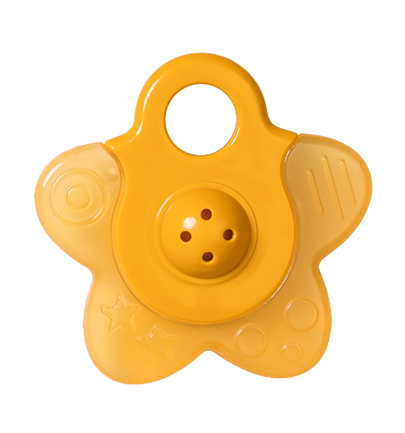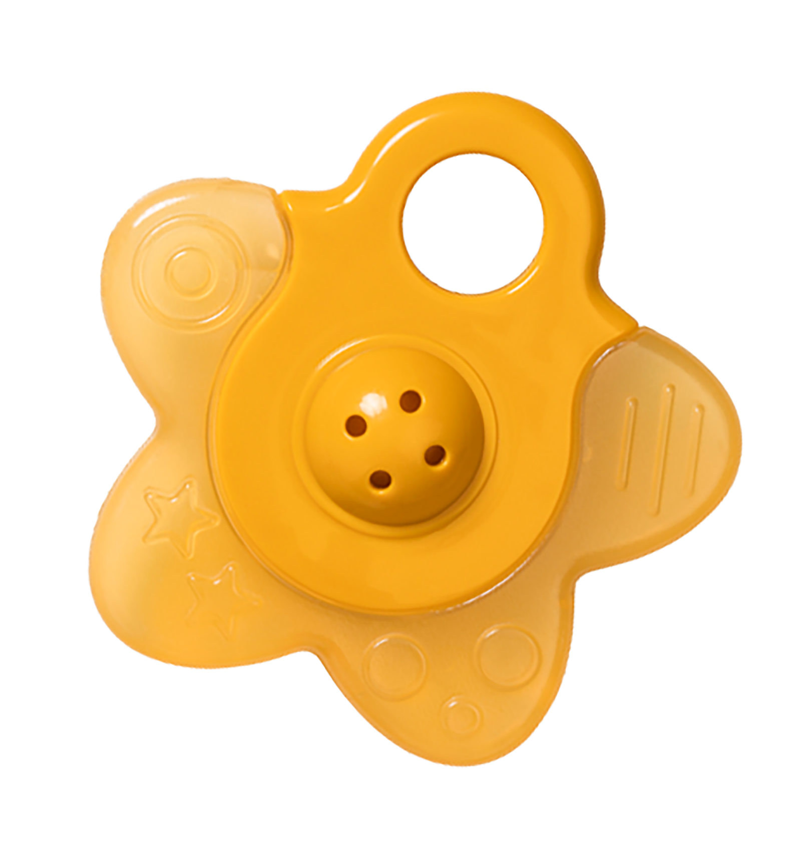 Alleugereix el dolor de la sortida de les dents amb aquest mossegador sonall. El refredes a la nevera i refrescarà el teu petit, ja que el fred redueix la inflor de les genives. A més, tenen textures, de manera que també proporcionen un suau massatge. Fàcils d'agafar. I amb un petit cascavell al seu interior. A partir de 6 mesos.