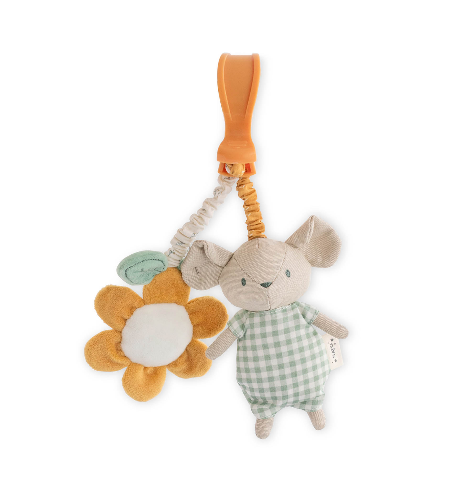 Diversió en cada passeig! Aquest adorable animaló amb pinça acompanya al teu bebè allà on vagi. Amb sonall, mirall, textures i paper cruixent, estimula els seus sentits i promou la coordinació rajo-ull des dels primers mesos.