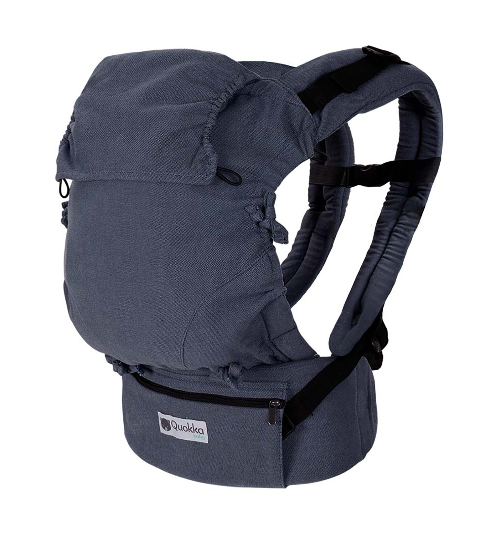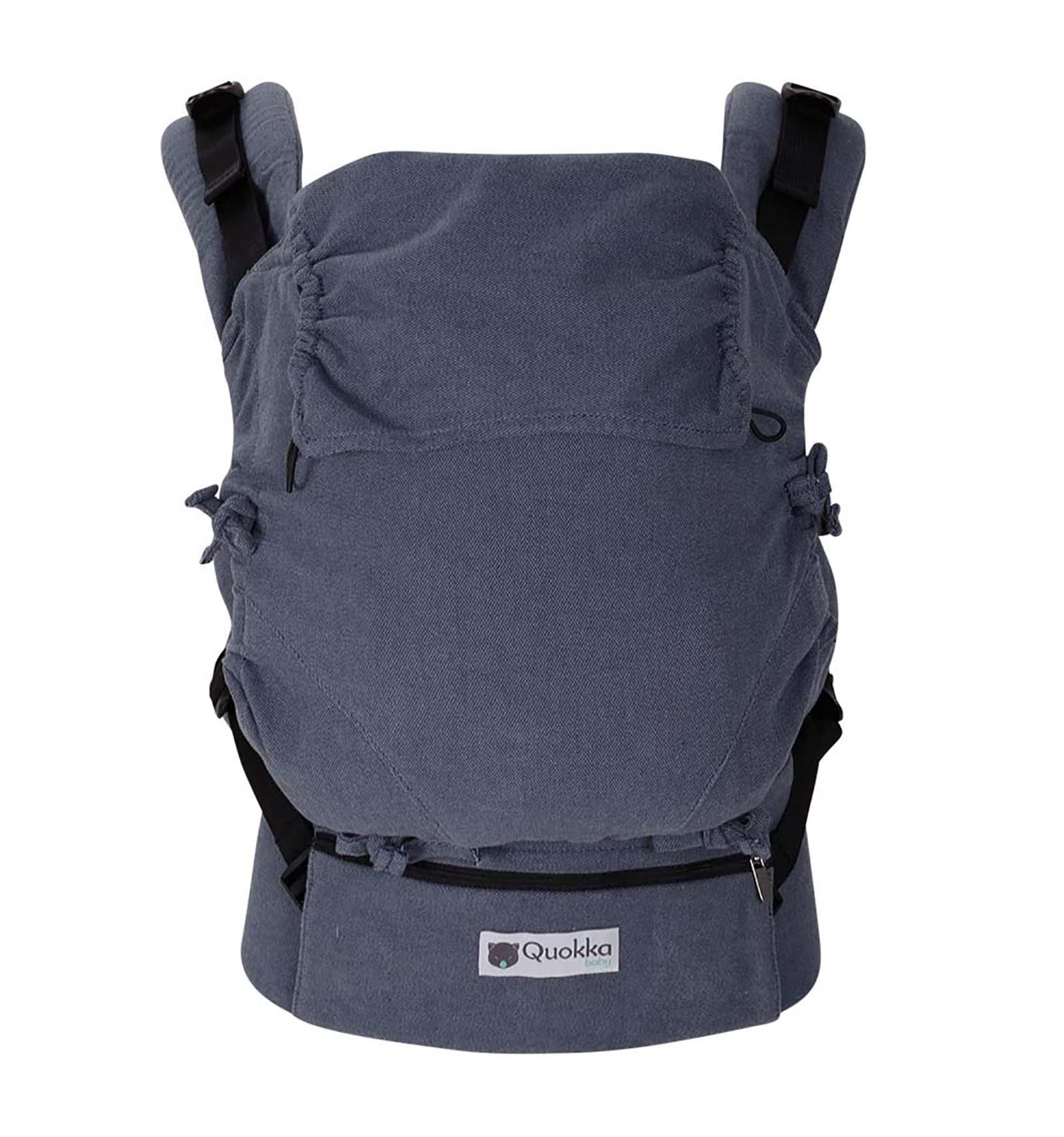 La motxilla portanadons Quokkababy E-Carrier és ergonòmica, evolutiva i ultra suau. Apta des de nounat fins als 3 anys (3,2–22 kg), ofereix un ajust precís, teixit de cotó orgànic tipus fulard, suport per al cap i tres posicions de porteig. Inclou protectors, caputxa i bossa de transport.