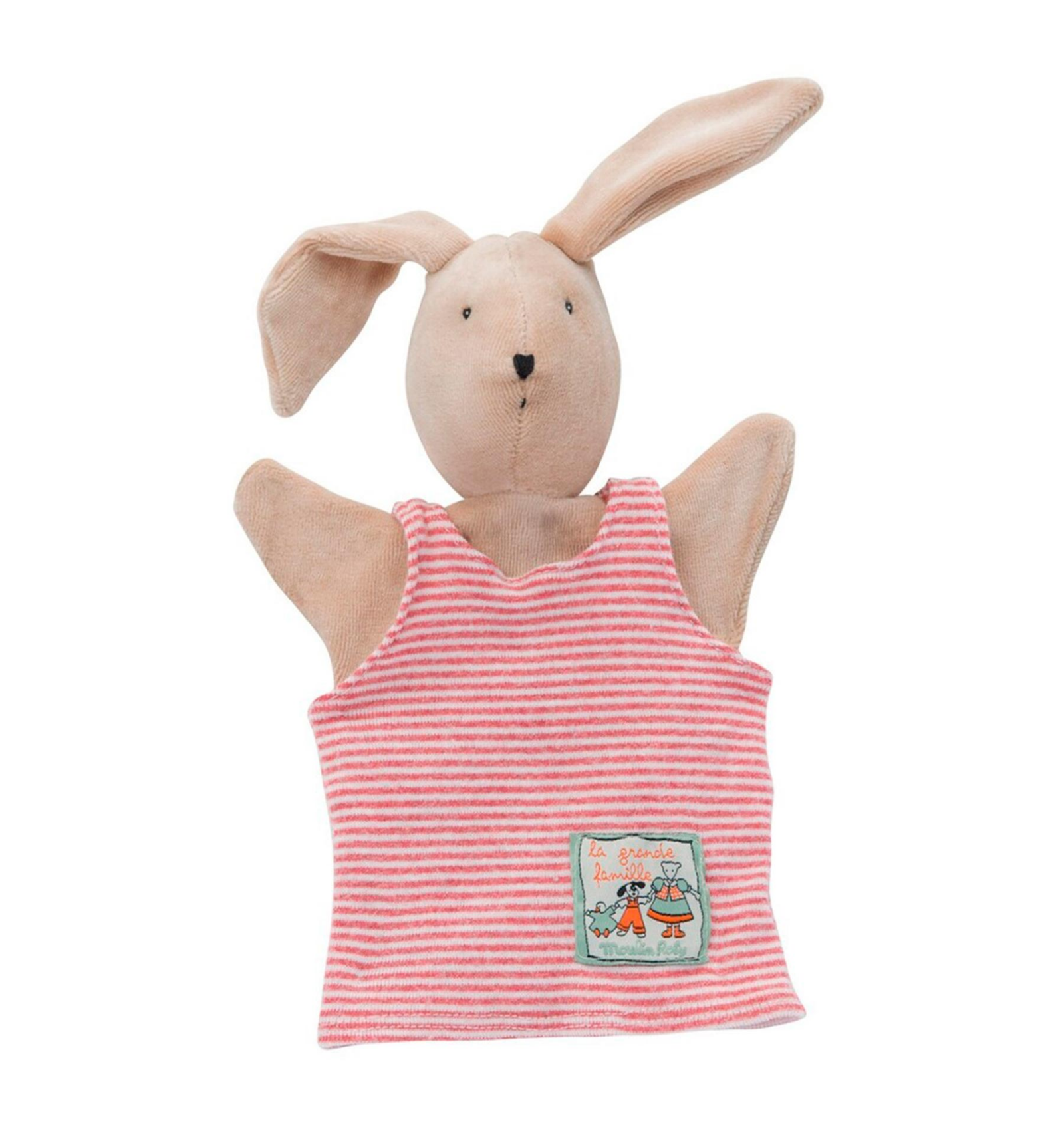 Sylvain el conillet s'ha transformat en una titella per entretenir els nadons amb el seu gran somriure i la seva suau pell de vellut. Ideal per entretenir els petits!