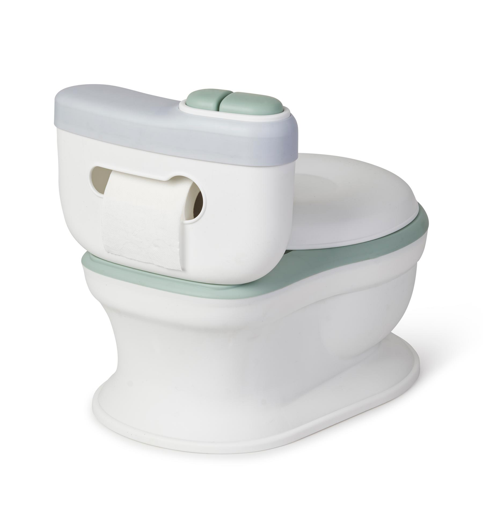 Un divertit orinal similar al WC d'un adult, amb tapa i una divertida cisterna amb el so dels WC reals. Perfecte per a començar el període de transició del bolquer al vàter. Amb una cisterna amb espai per al paper higiènic. L'orinal s'extreu per a la seva neteja, d'una forma ràpida i senzilla. El mòdul de so funciona amb 2 piles AAA (no incloses).