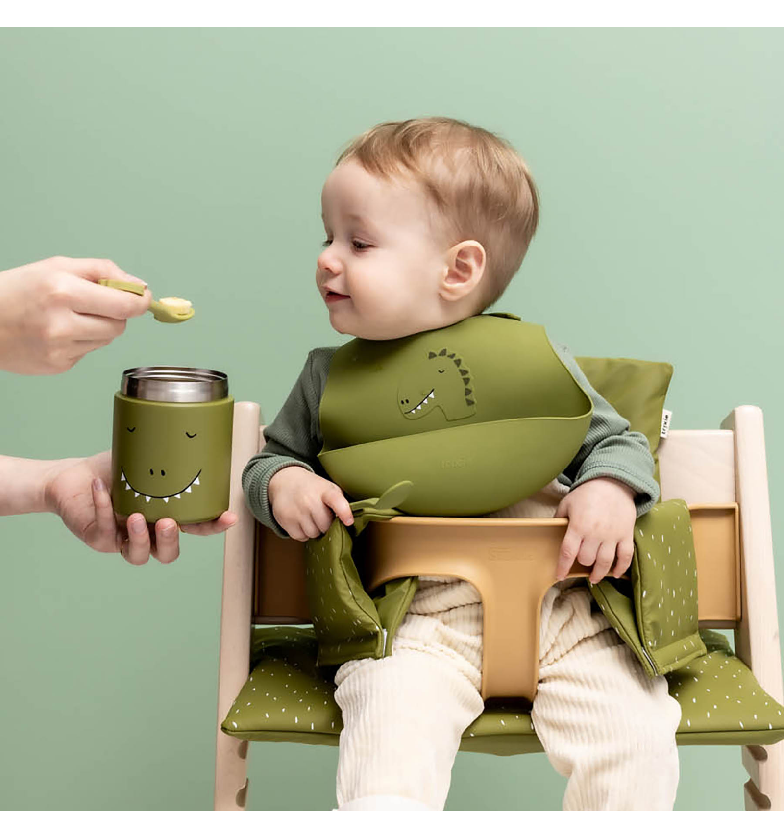 Menjars més nets i divertides amb aquest pitet de silicona amb animalons. La seva pràctica butxaca recull molles i vessaments, i el seu material segur i resistent ho fa ideal per al dia a dia. Neteja fàcil i zero drames!
