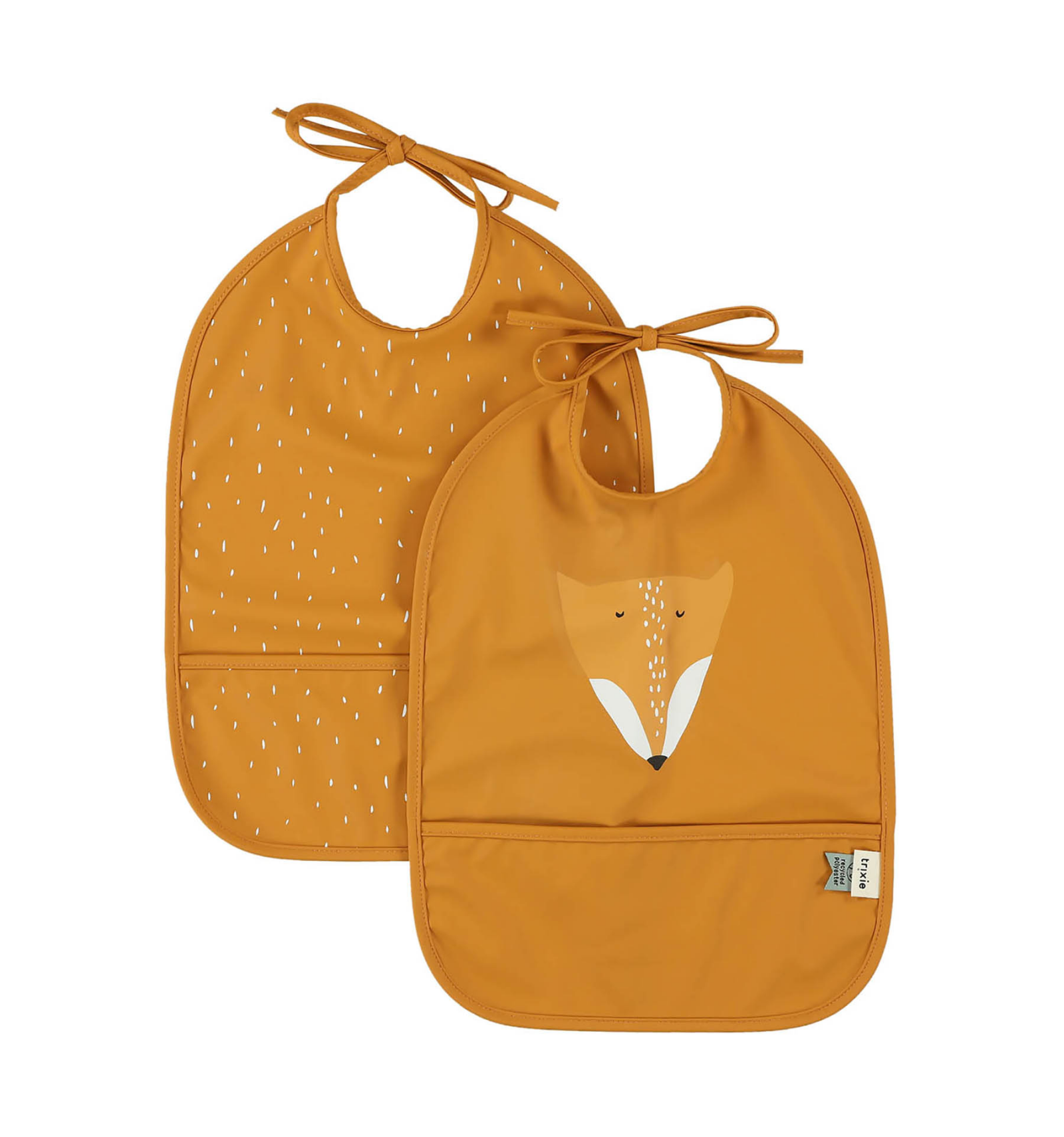 El pack de dos pitets impermeables de la marca Trixie, amb mesures de 36x27 cm, és perfecte per a mantenir al teu bebè net i sec durant els menjars. Inclouen cinta per a lligar-los i una pràctica butxaca recull-molles. Són fàcils de netejar i còmodes per a l'ús diari, ideals per a bebès actius.