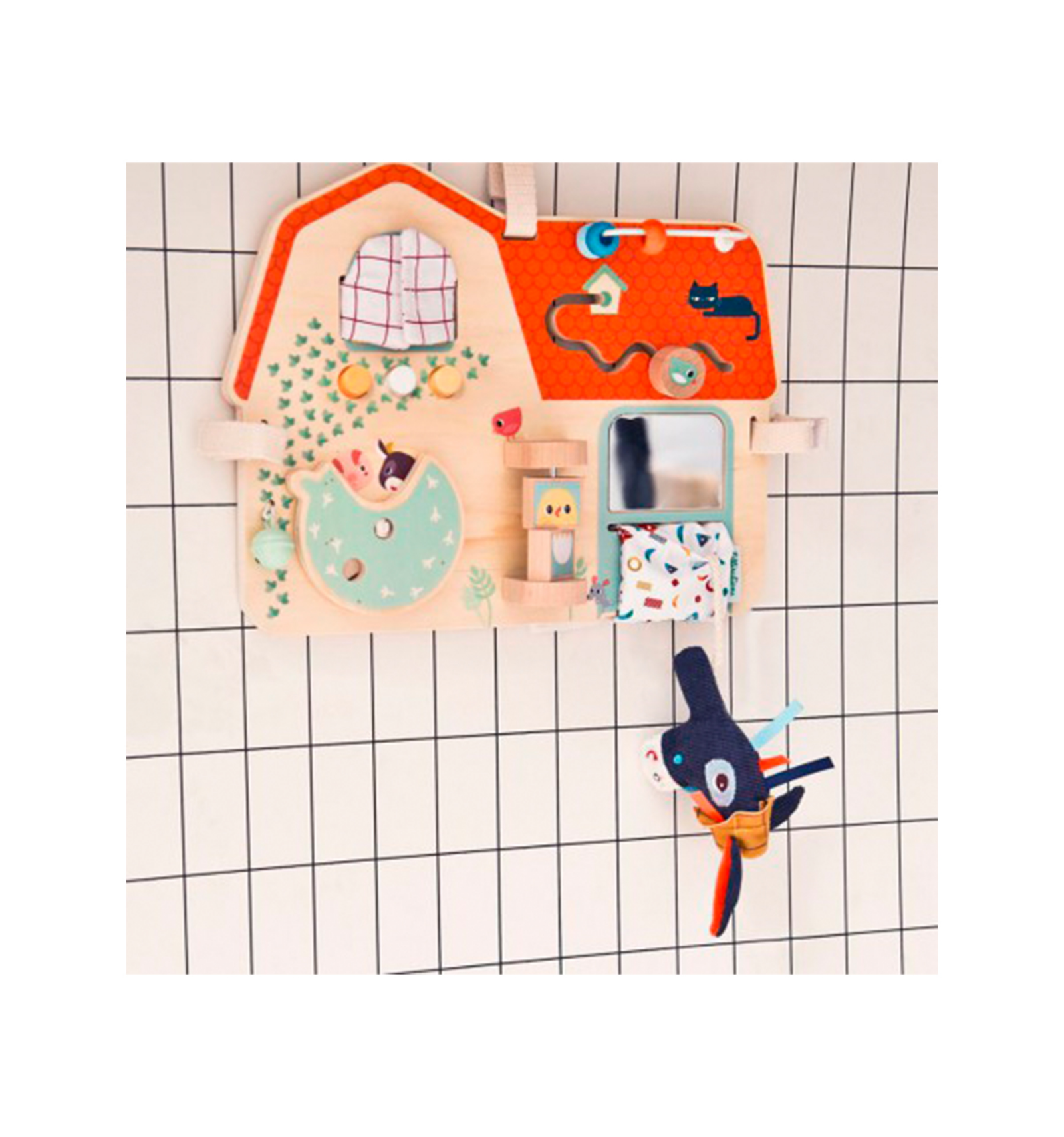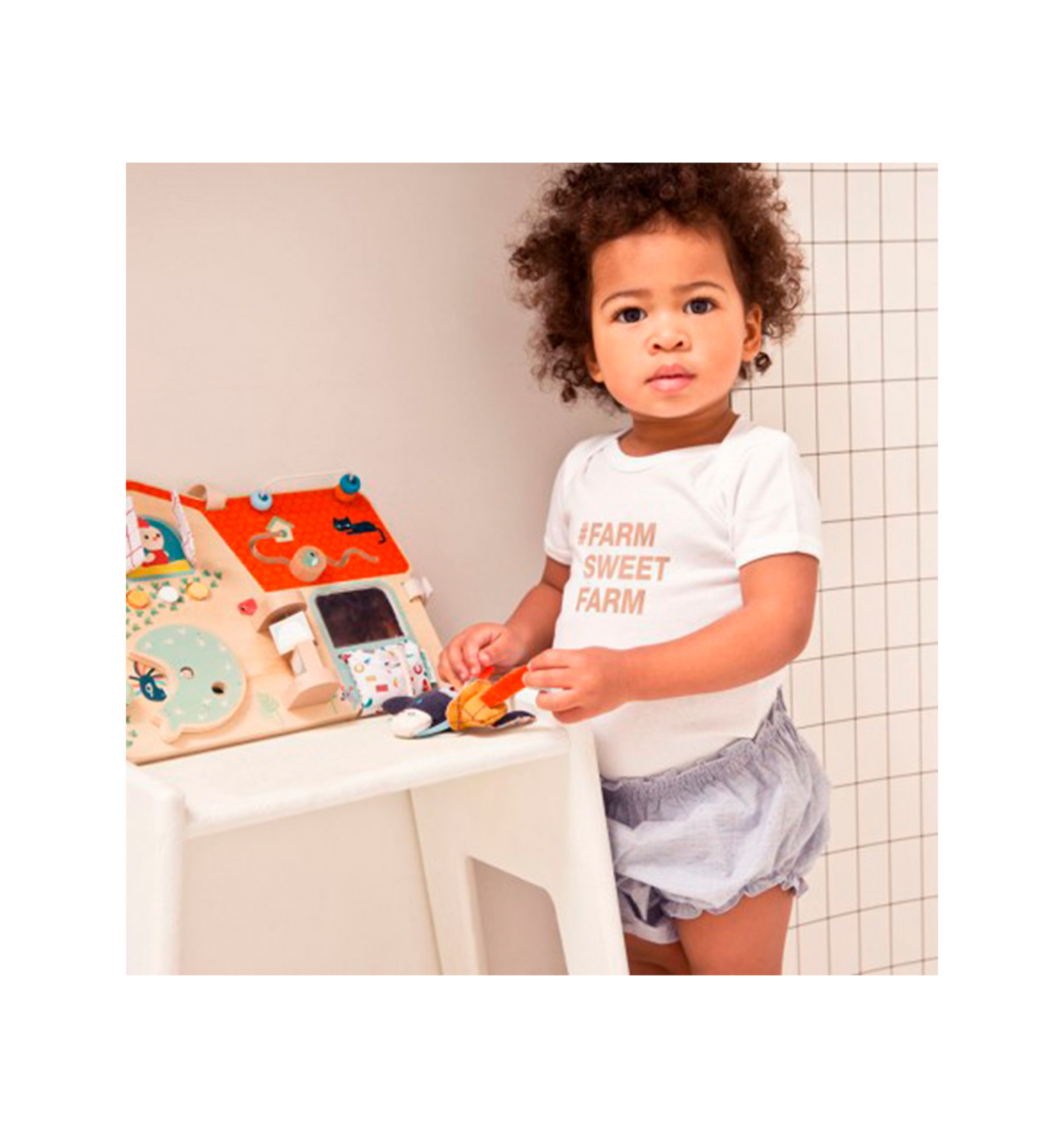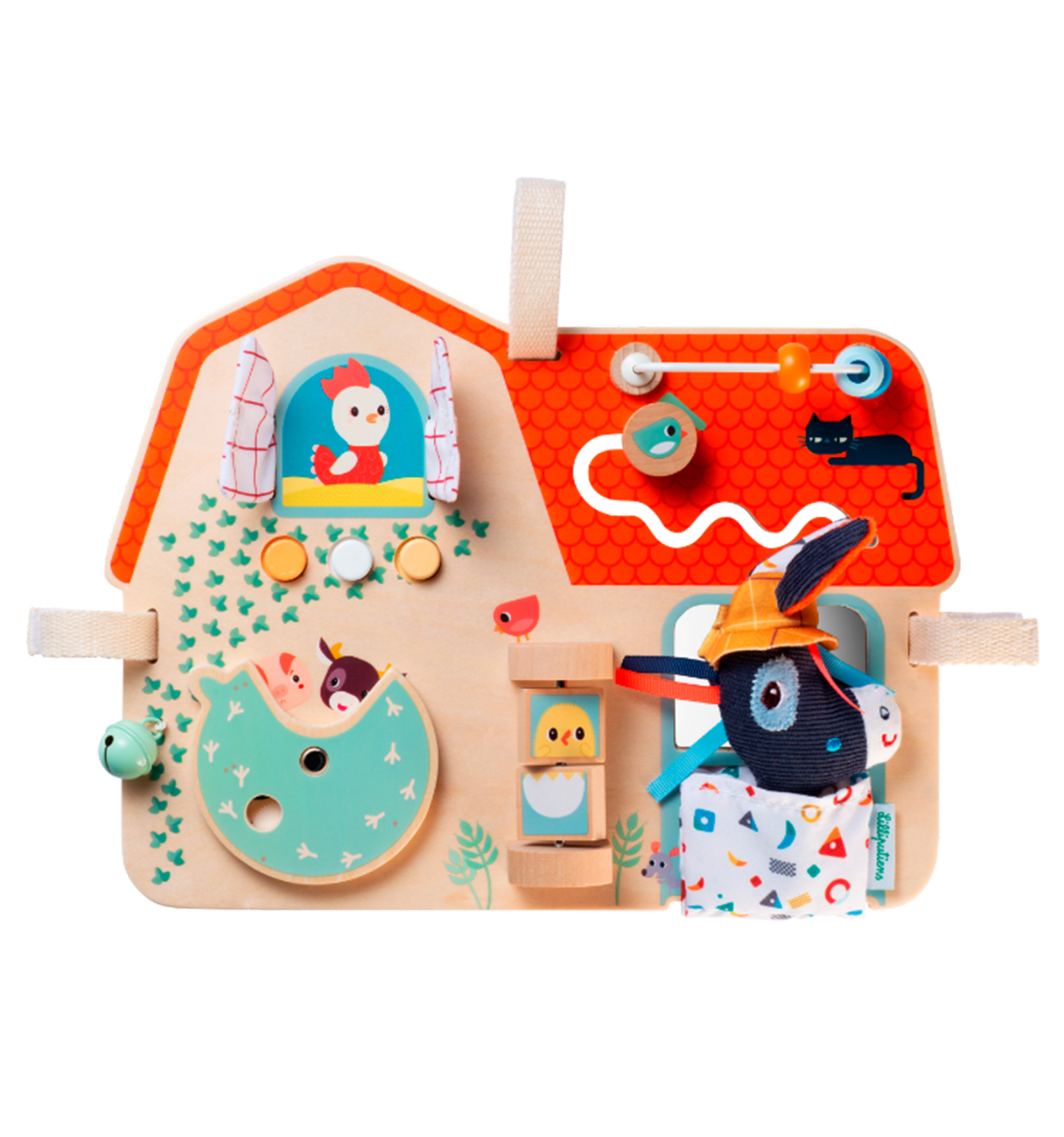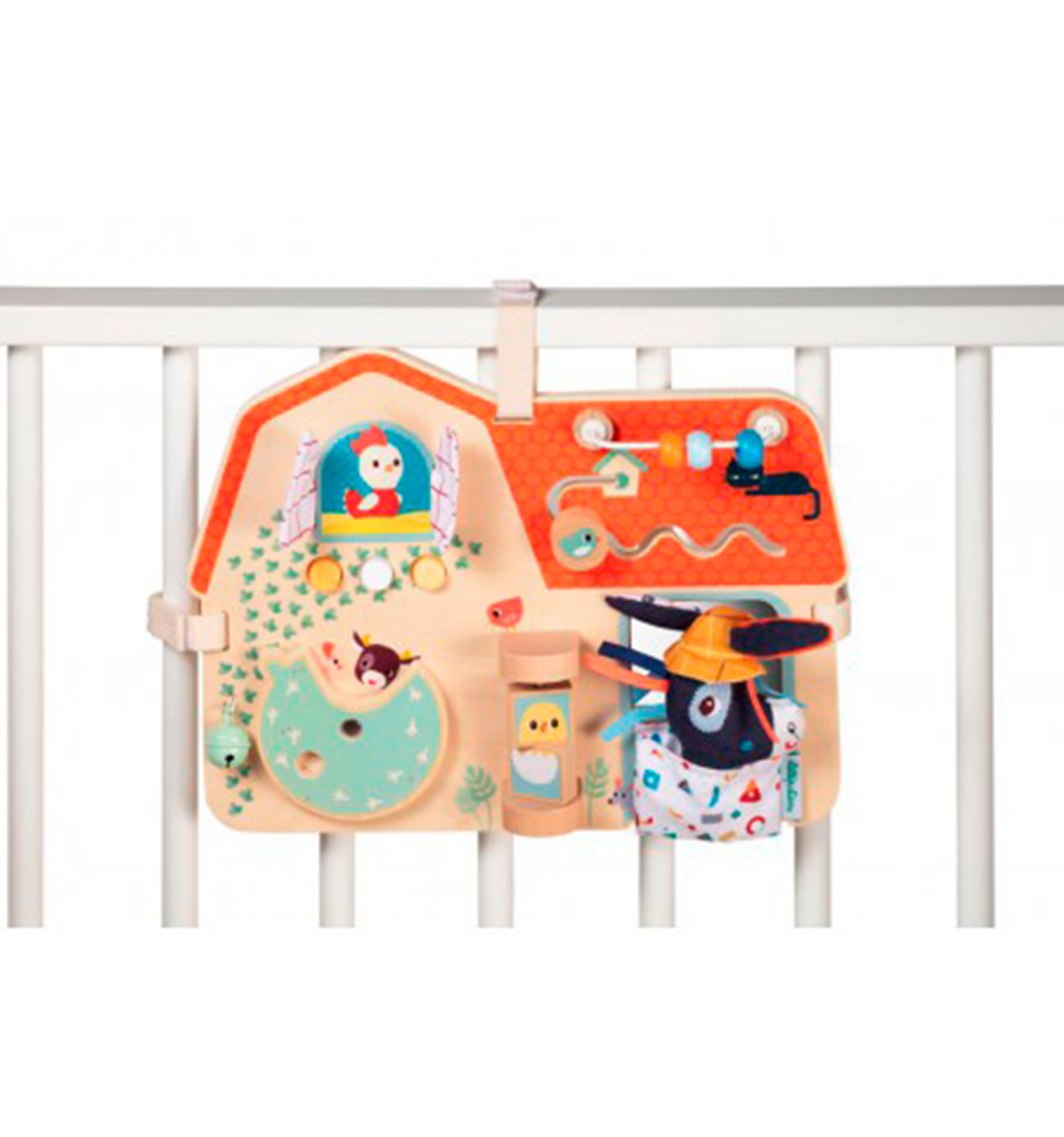 Hores de diversió i aprenentatge amb aquesta granja de Lilliputiens. Un panell d'activitats que ofereix un munt d'activitats i materials que estimulen els més petits a descobrir colors, textures, moviments, sons,... Es pot penjar fàcilment gràcies als seus fermalls de velcro i les seves peces de tela poden rentar-se en la rentadora.