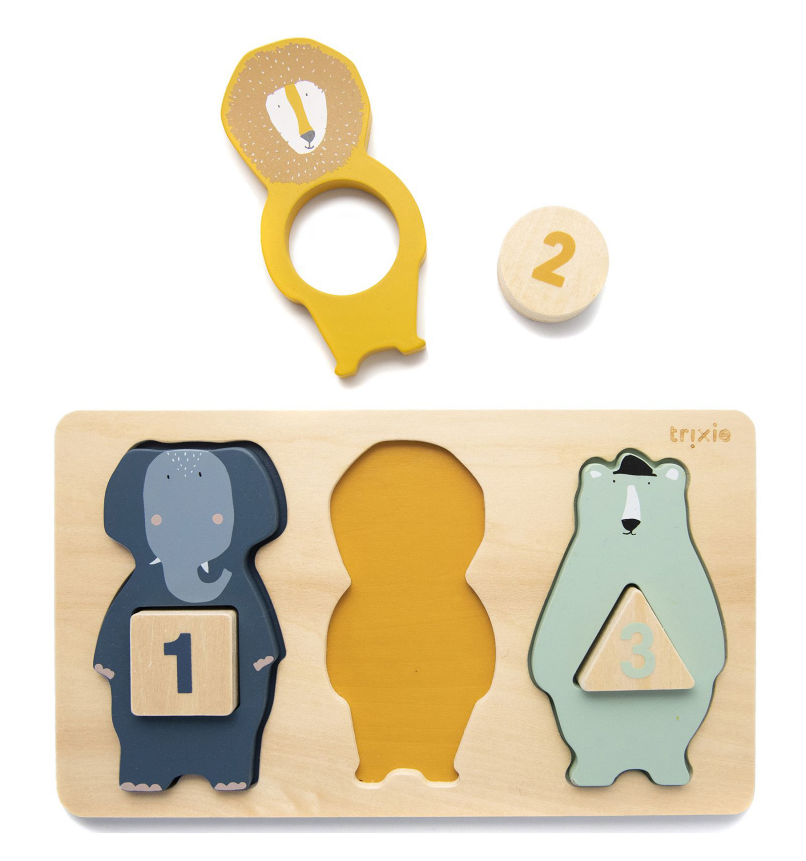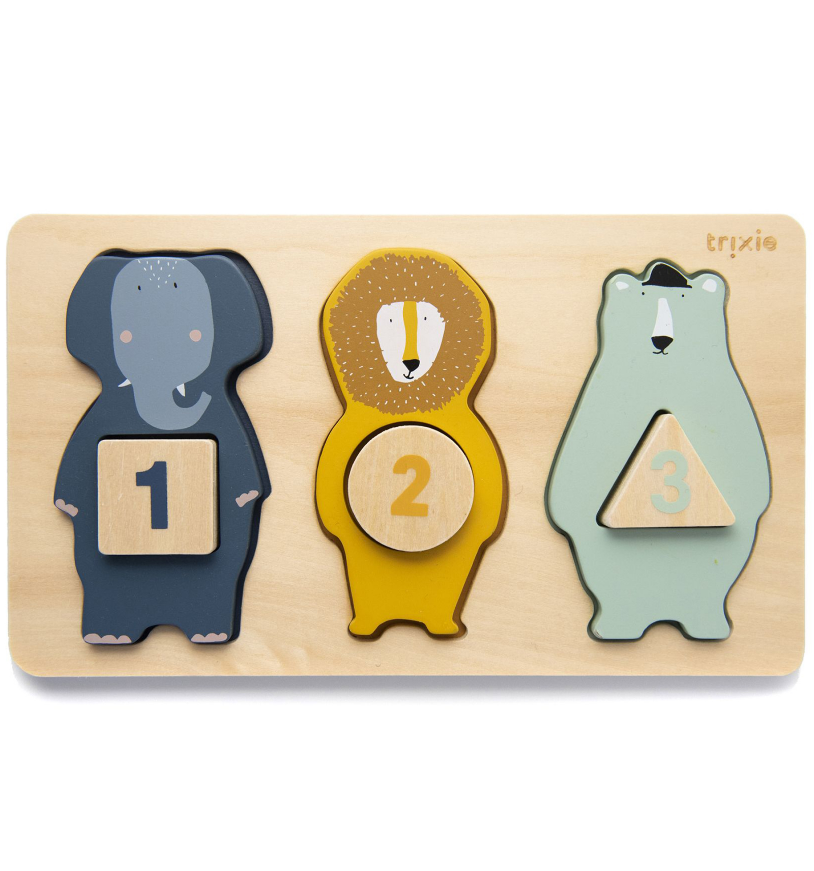 El meu primer puzle. Una forma divertida de conèixer diferents animals, els números, i de millorar les habilitats motores fines. En treure una peça apareix un color representatiu d'aquest animal. Tot en 100% de fusta certificada FSC© i amb pintures a base d'aigua, segures per a les criatures i no tòxiques. Des dels 12 mesos.