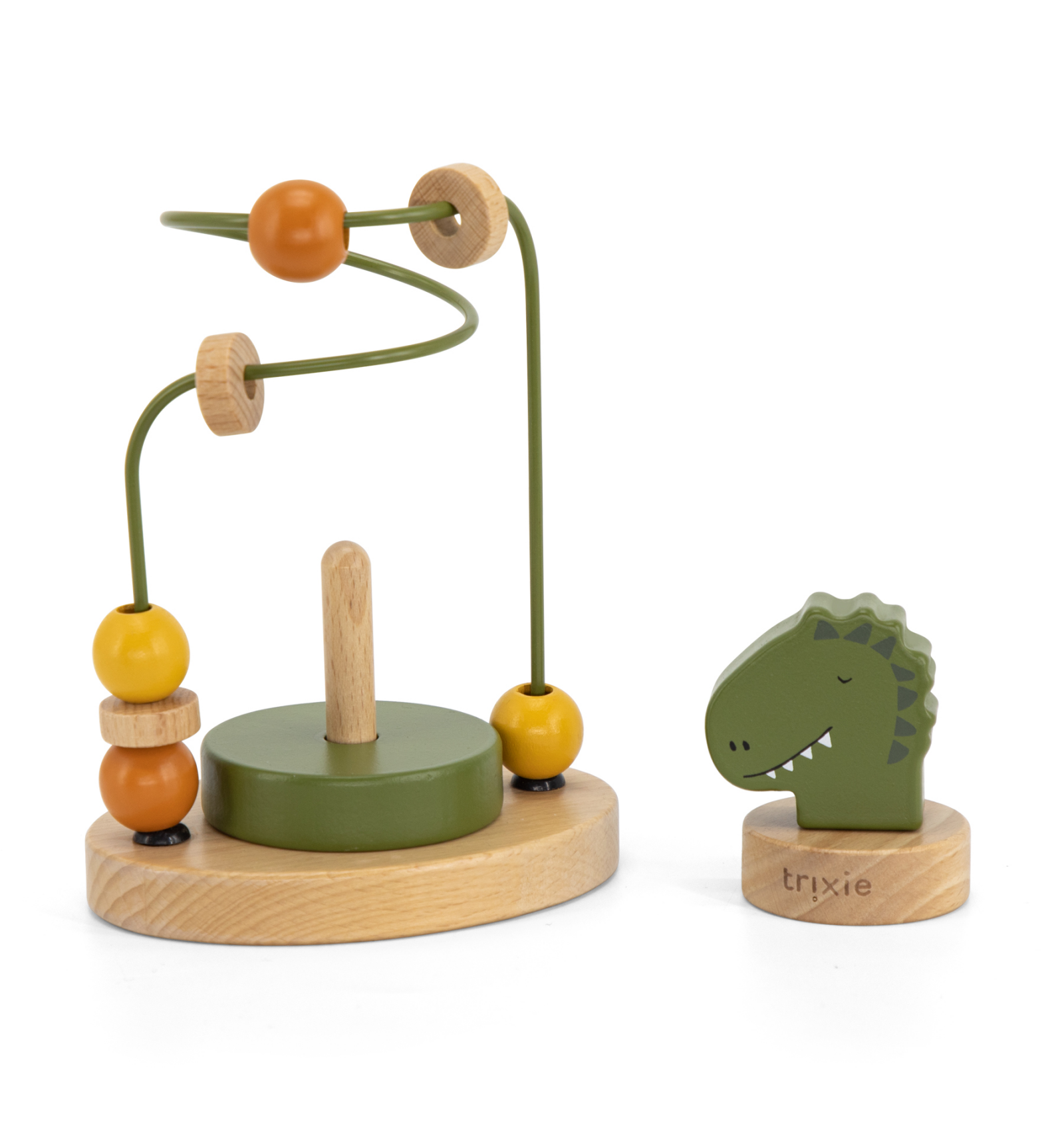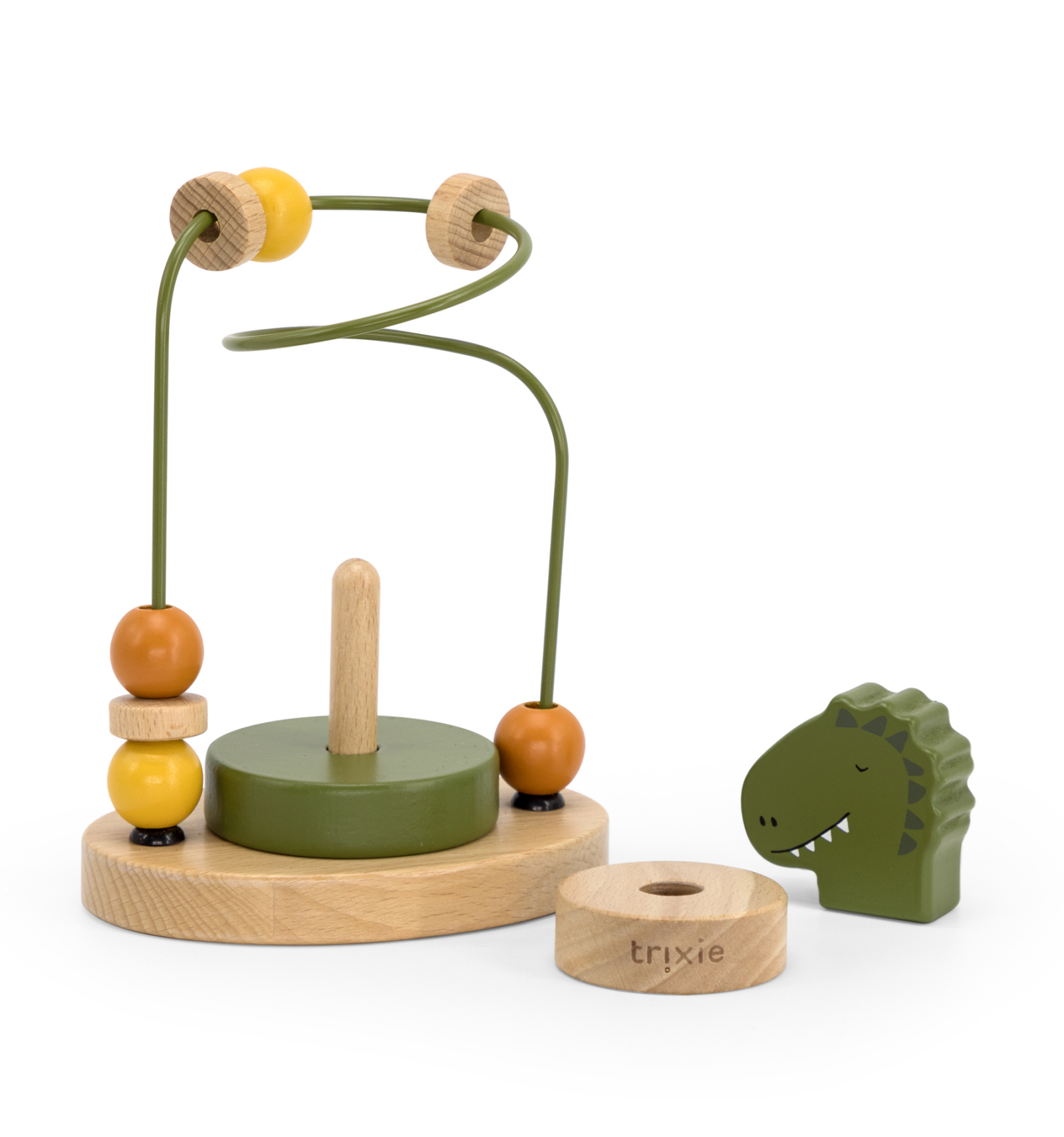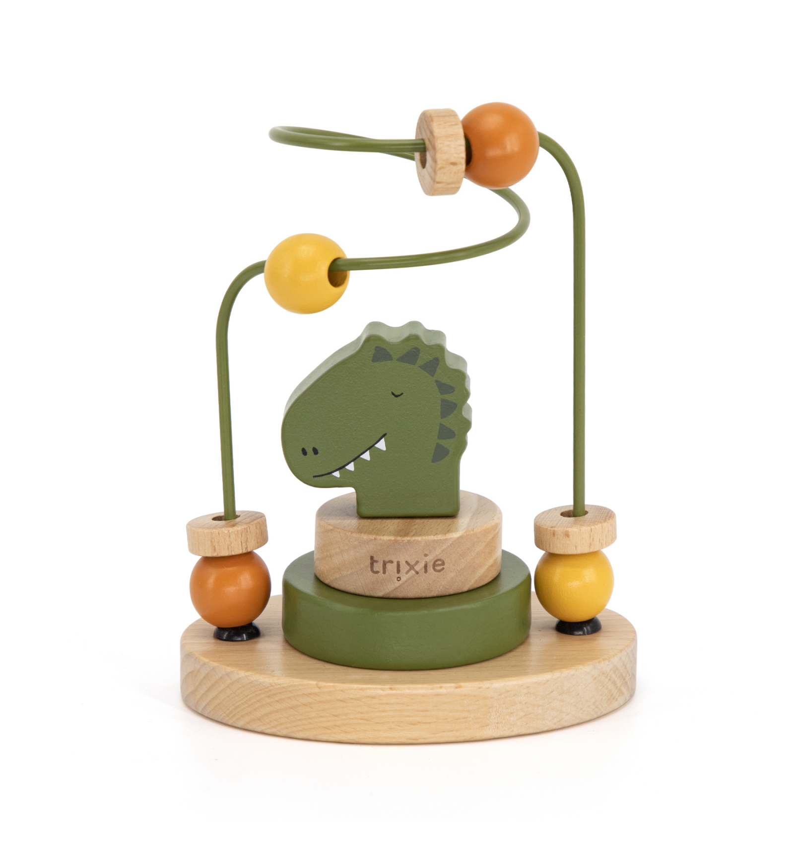 Un laberint per a divertir-se mentre es treballen les habilitats motores fines. Les boles es llisquen al llarg del filferro i les peces de fusta s'apilen. Tot en fusta 100% certificada FSC© i amb pintures a base d'aigua, segures per a les criatures i no tòxiques. Des dels 12 mesos.