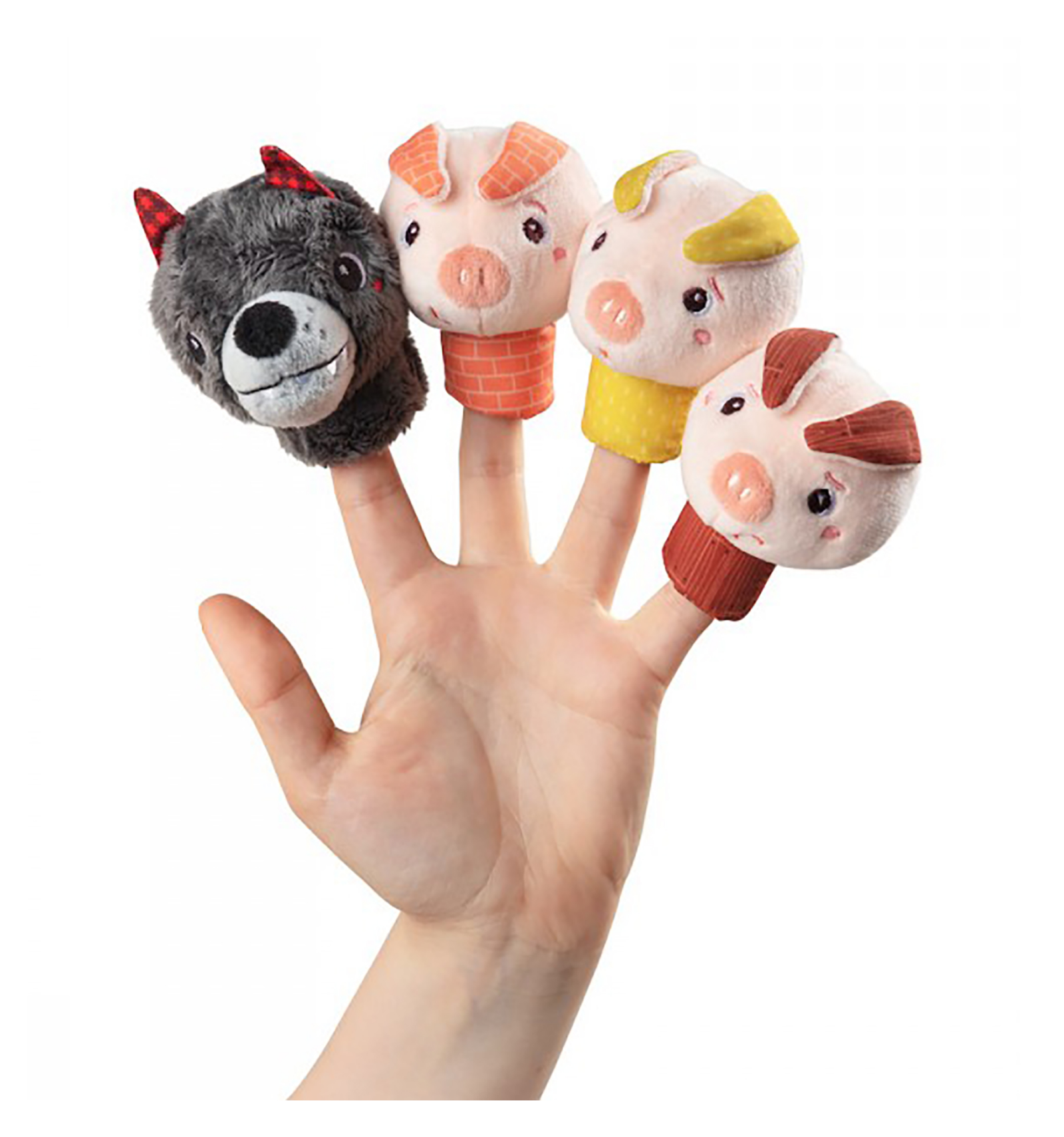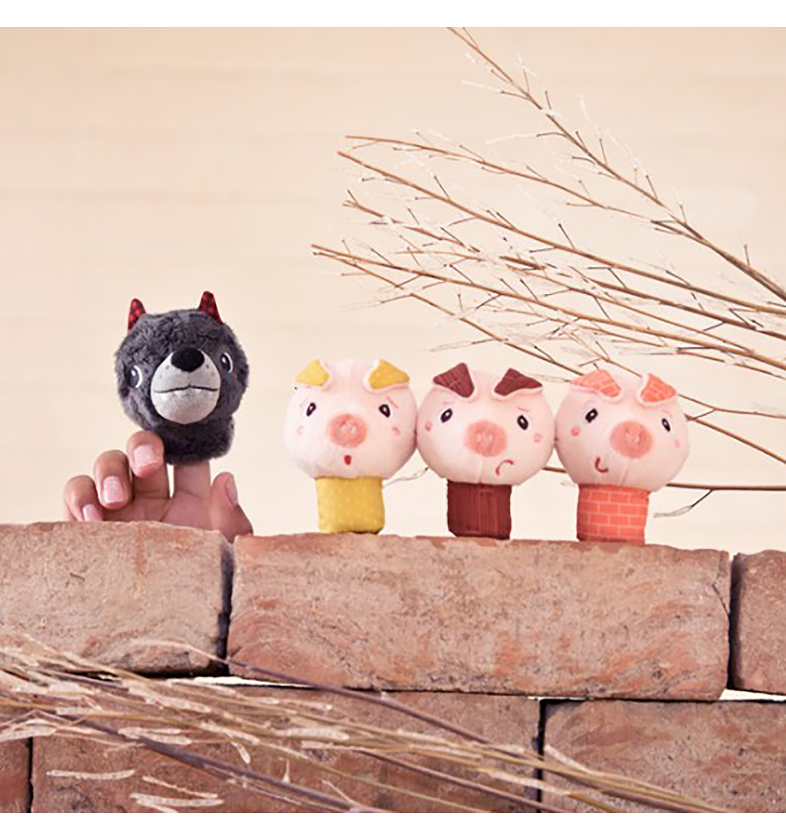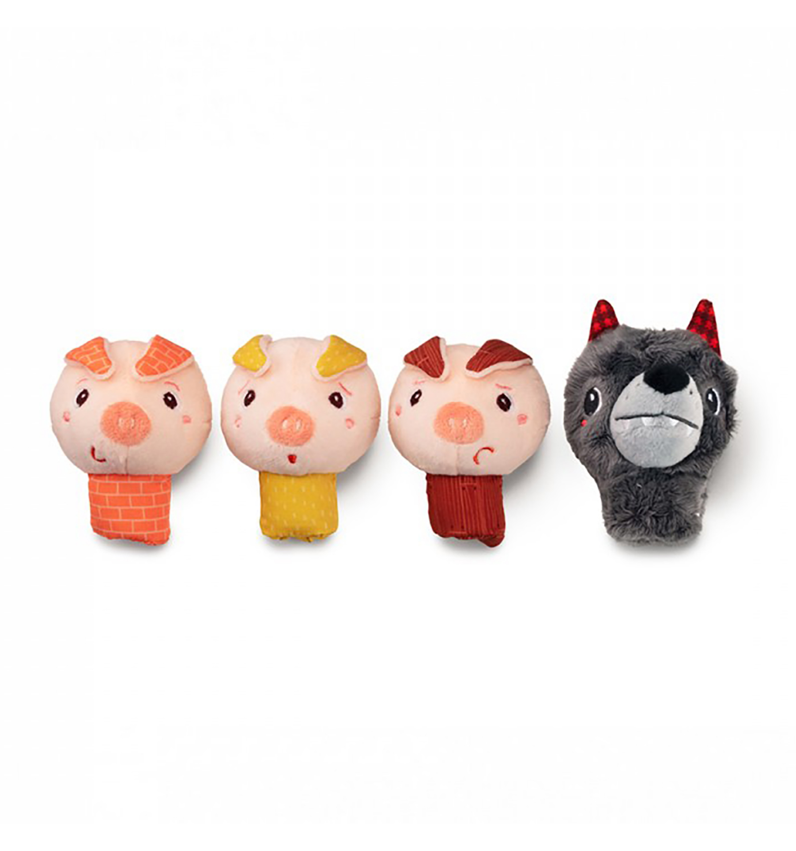Les marionetes de dits dels Tres Porquets de Lilliputiens permeten recrear el clàssic conte on i quan vulguin. Ideals per a estimular la imaginació i la motricitat fina.
