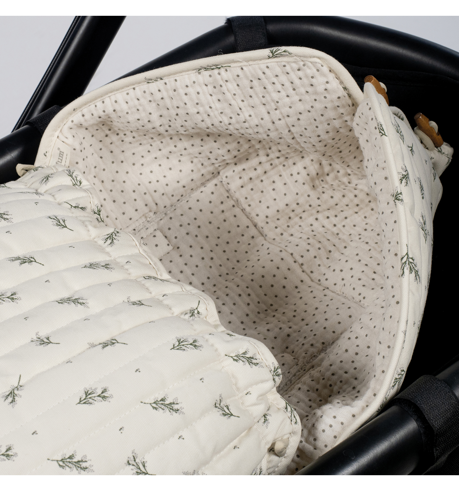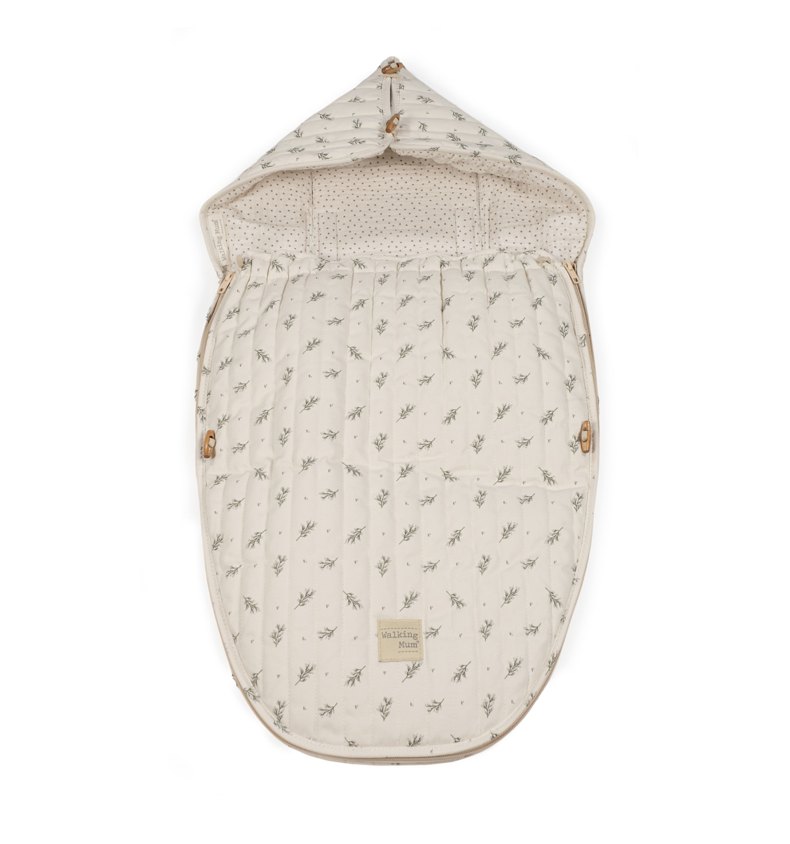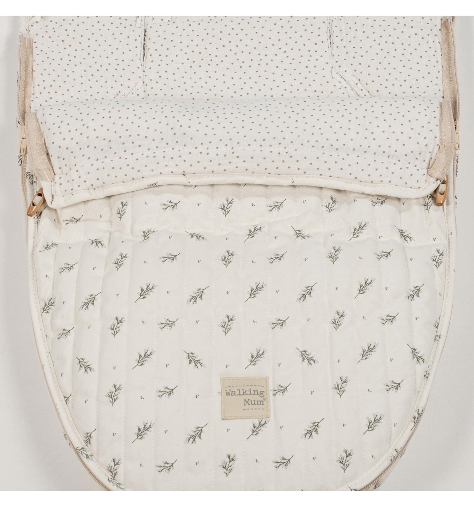 La funda amb sac Mimosa Verd de Walking Mum és perfecta per a cucut i portabebè. Amb interior de mussolina 100% cotó, ofereix suavitat i confort al nadó. El seu disseny adaptable, amb farciment extraïble i posterior anti-sudoració, la fa ideal per a primavera i tardor.