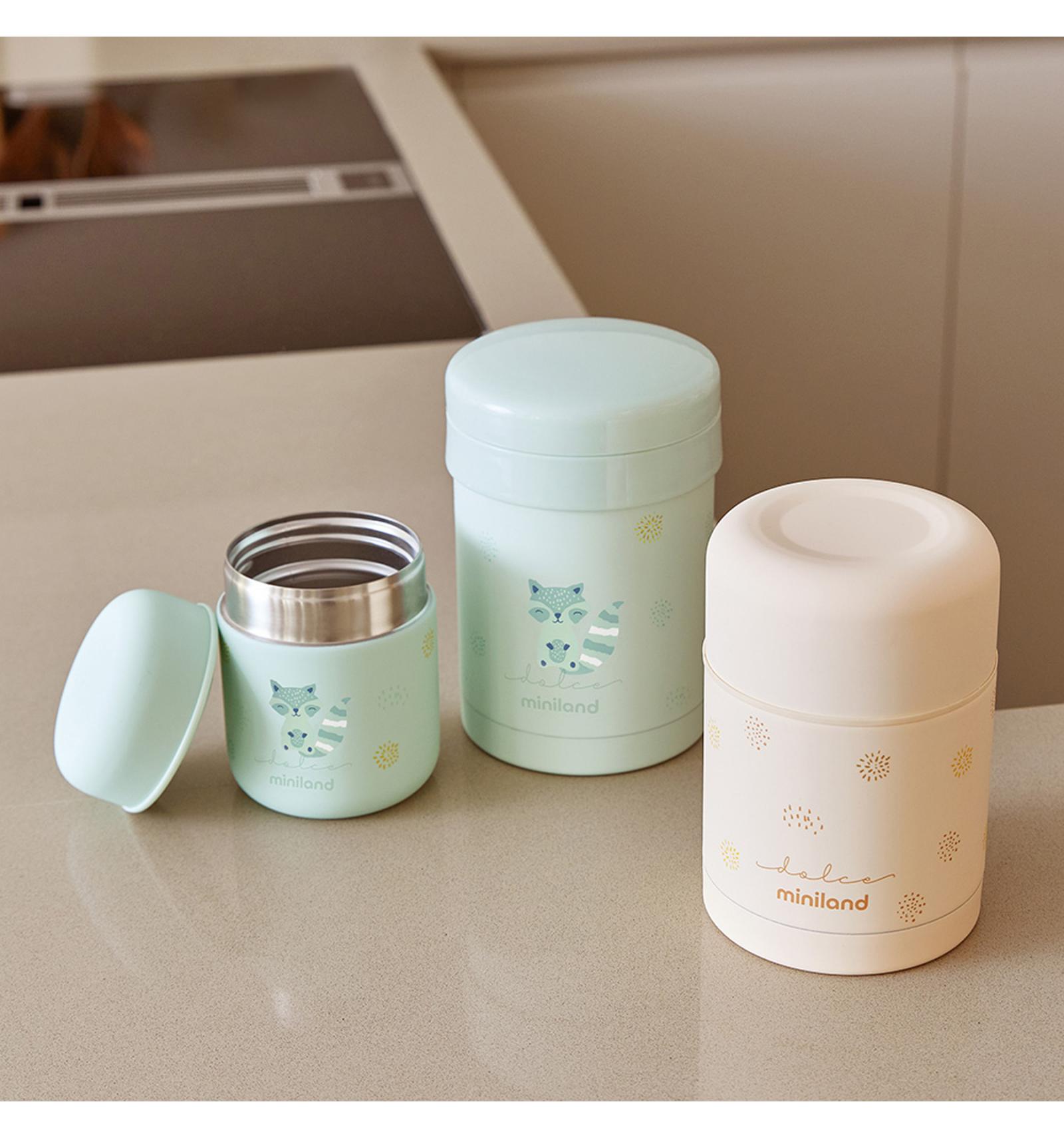 El termo de menjar Food Thermy Mint és ideal per a pares i bebès que sempre estan en moviment. Amb una capacitat de 280 ml, és perfecte per a portar les primeres farinetes i qualsevol tipus d'aliment sòlid, assegurant que fins i tot els bebès més golafres estiguin satisfets. Fabricat en acer inoxidable 18/8 (acer 304) amb doble paret i una capa exclusiva de coure, aquest termo garanteix una conservació òptima de la temperatura, mantenint el menjar calent o fred durant més hores que els termos convencionals.
