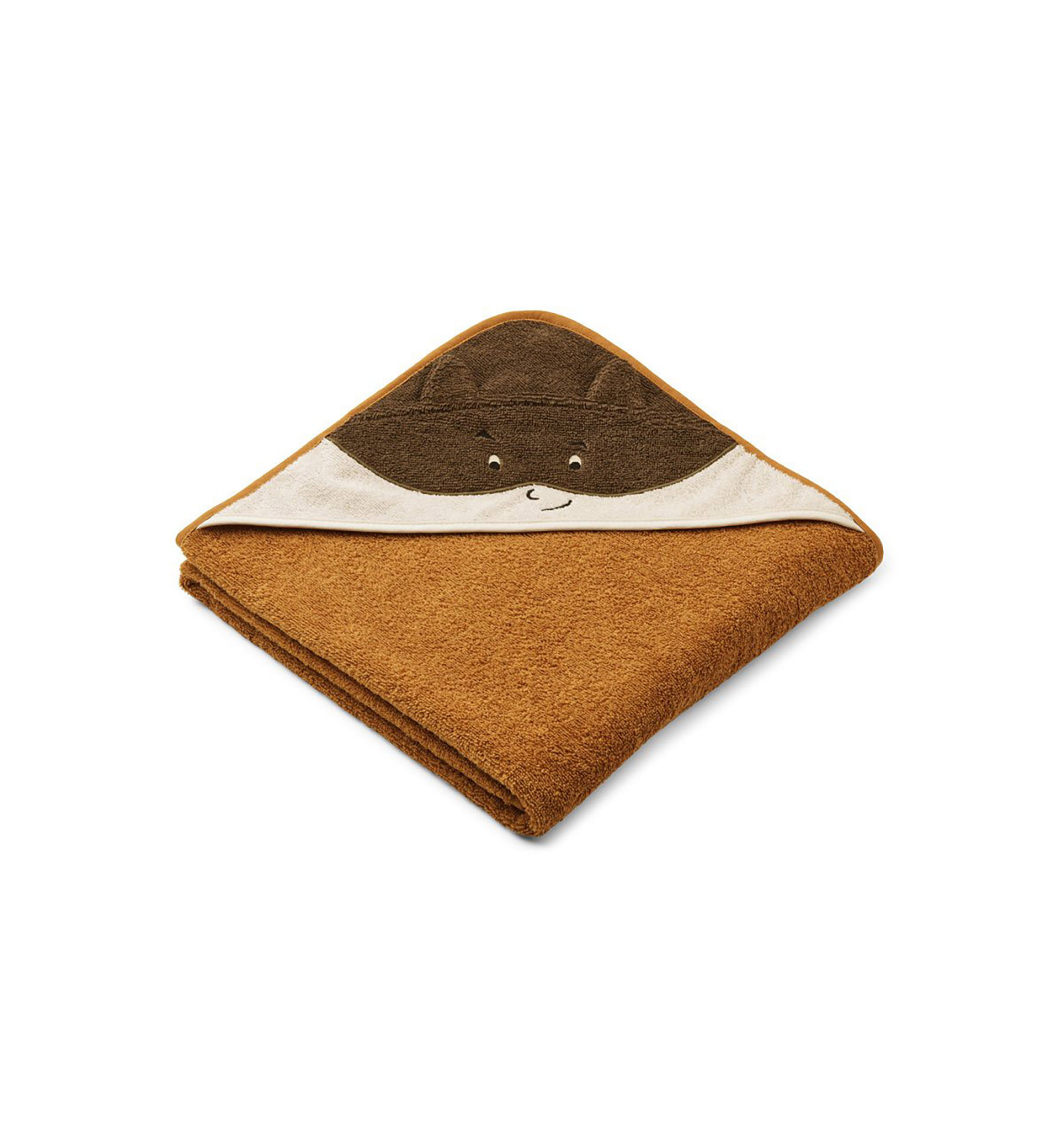 Tovallola amb caputxa Liewood fabricada amb la tela de cotó orgànic més suau. Amb una divertida cara d'animal i orelles a la caputxa. Perfecte per a sortir de la dutxa, per a assecar-se a la platja o, simplement, per a divertir-se convertint-se en un superheroi.