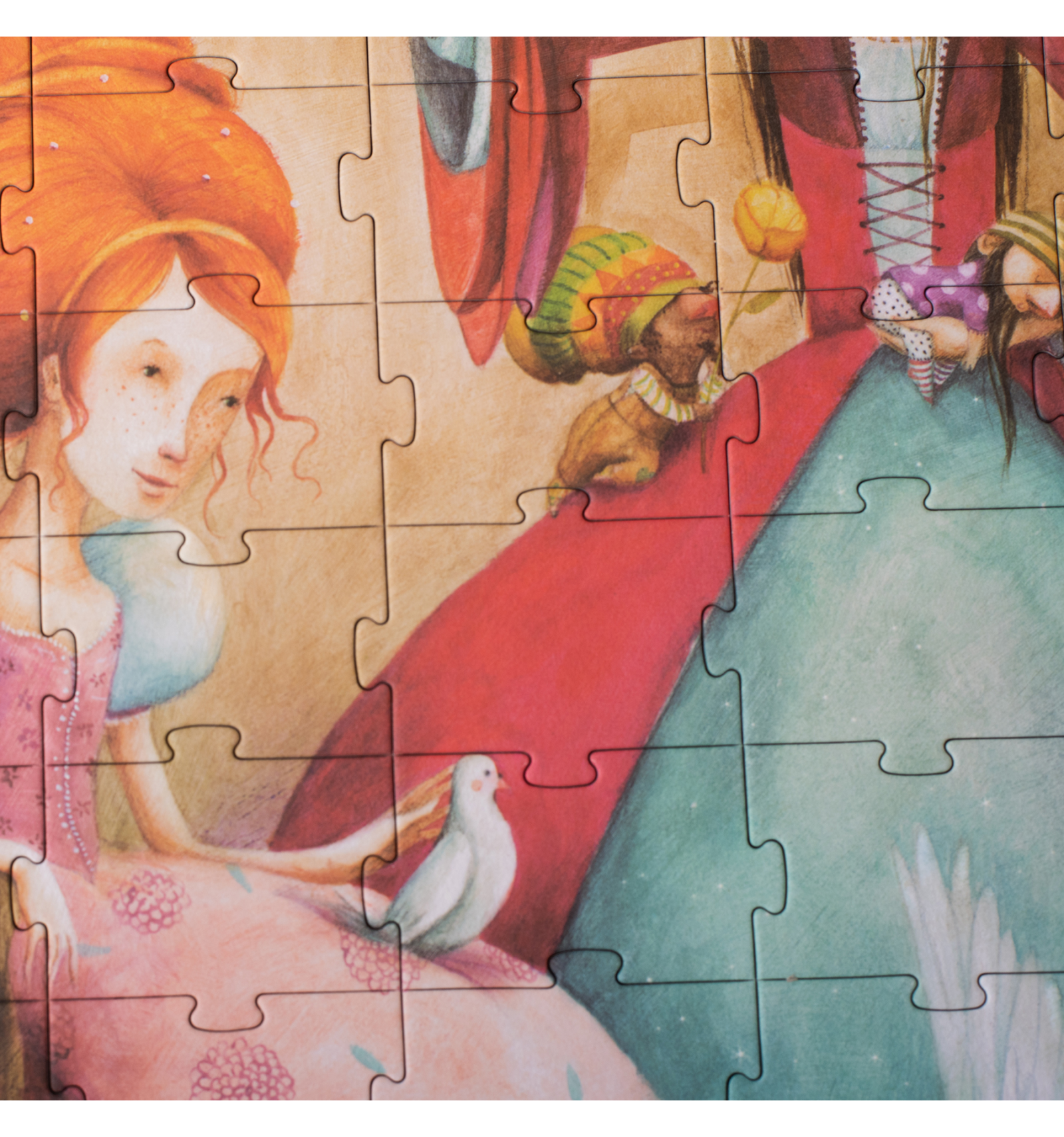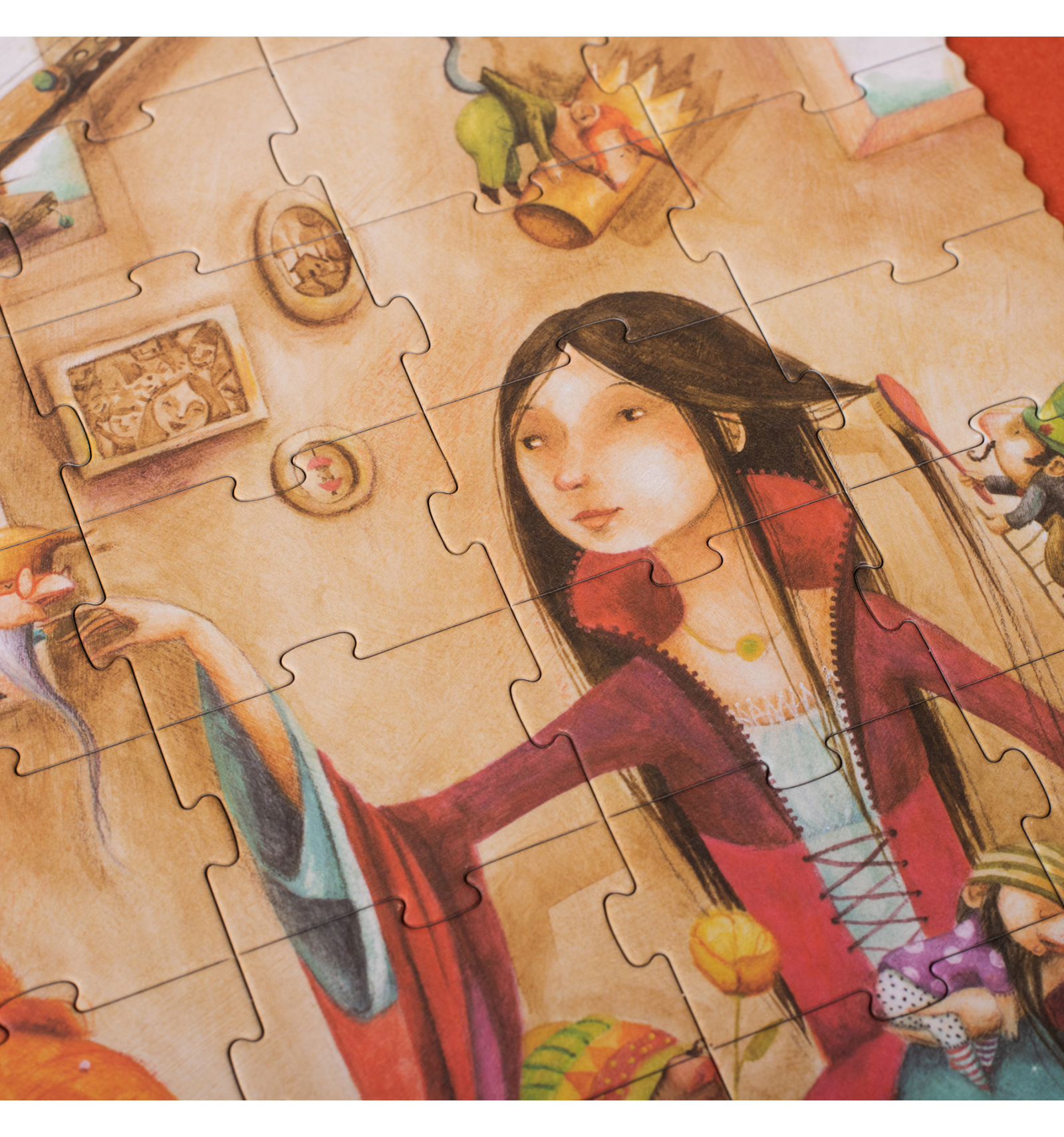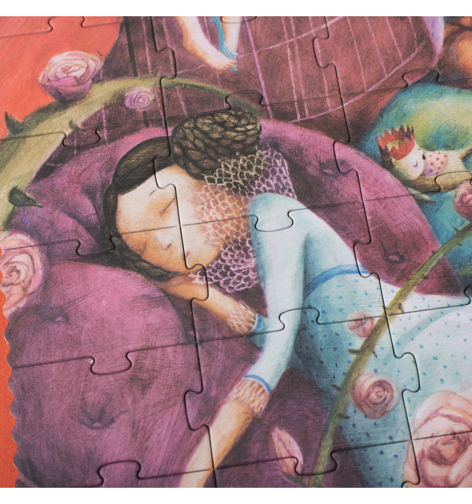 Blancaneu, Ventafocs i la Bella Dorment es reuneixen en un puzle màgic de 100 peces. Amb il·lustracions encantadores, aquesta joguina sostenible fomenta la creativitat i està fabricat a Barcelona amb paper FSC i cartó reciclat.