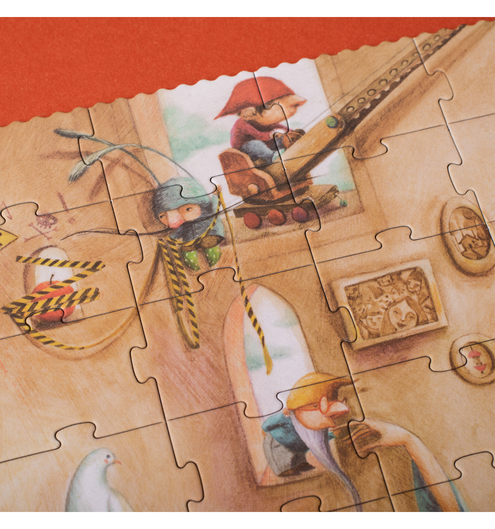 Amb il·lustracions de Sonja Wimmer, el puzle mesura 85 x 32 cm una vegada completat i està fabricat amb materials sostenibles com a paper FSC i cartó reciclat. Dissenyat i produït a Barcelona, és una joguina que fomenta la imaginació i la cura del medi ambient, perfecte per als amants dels contes i els puzles.