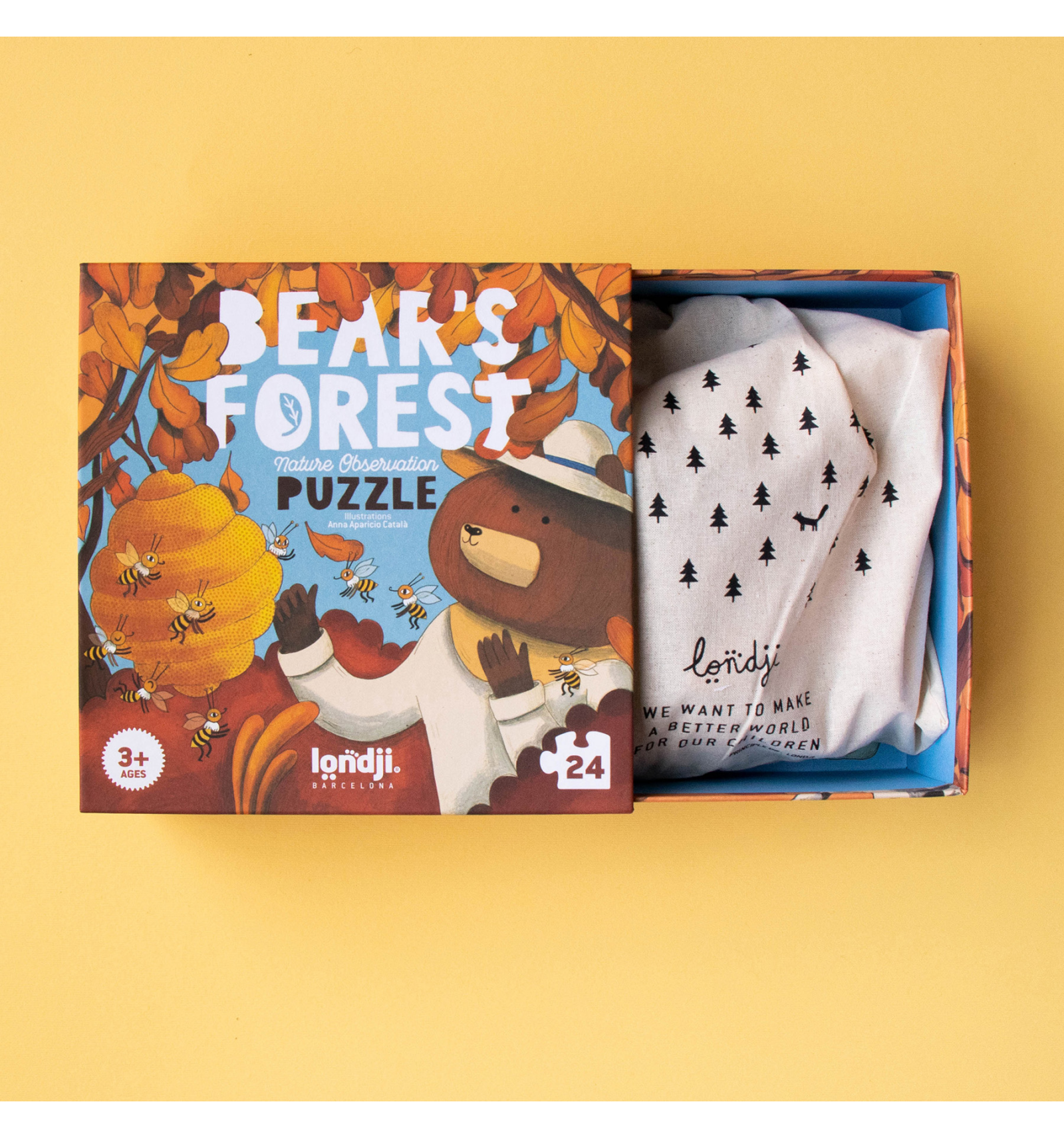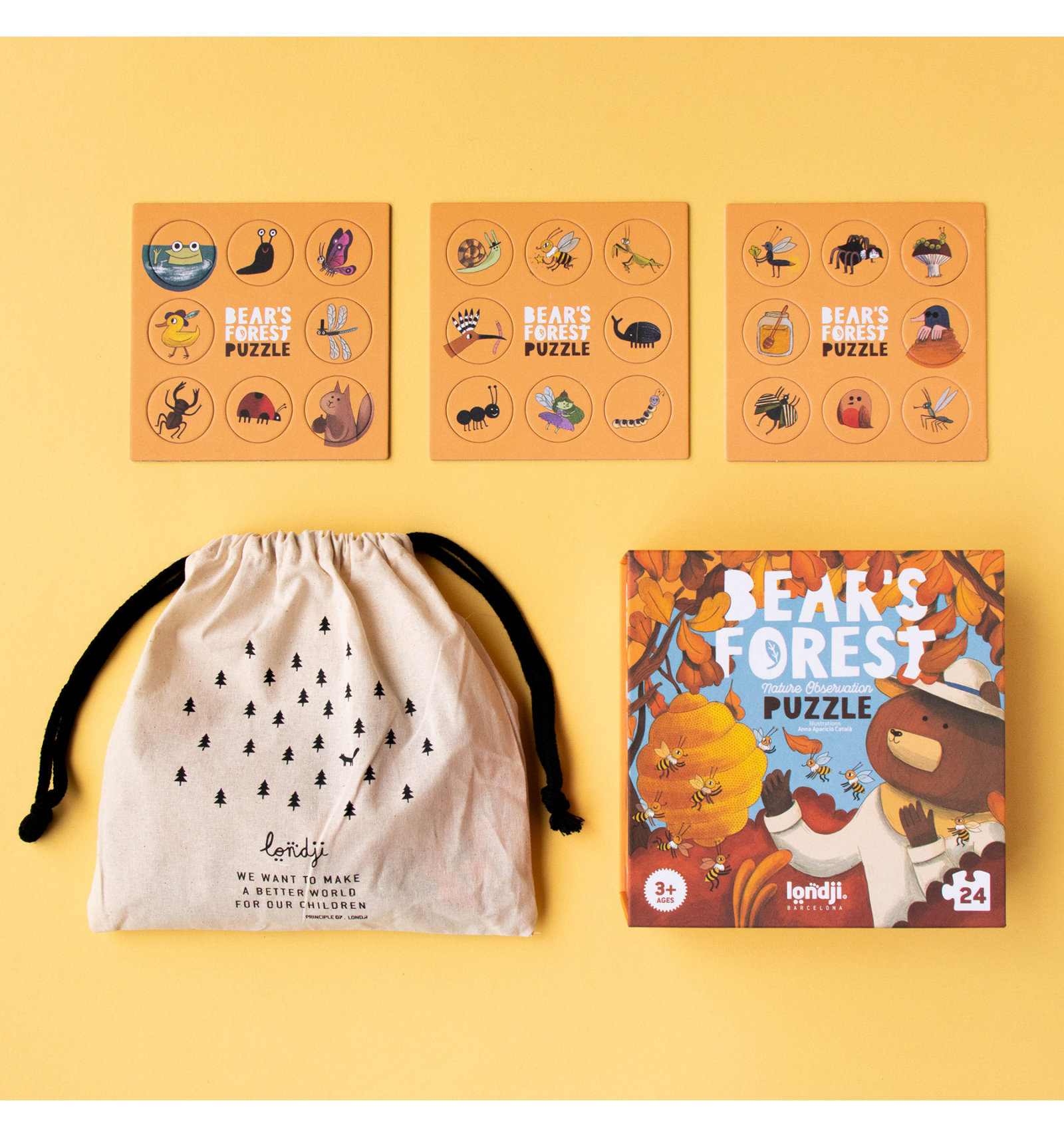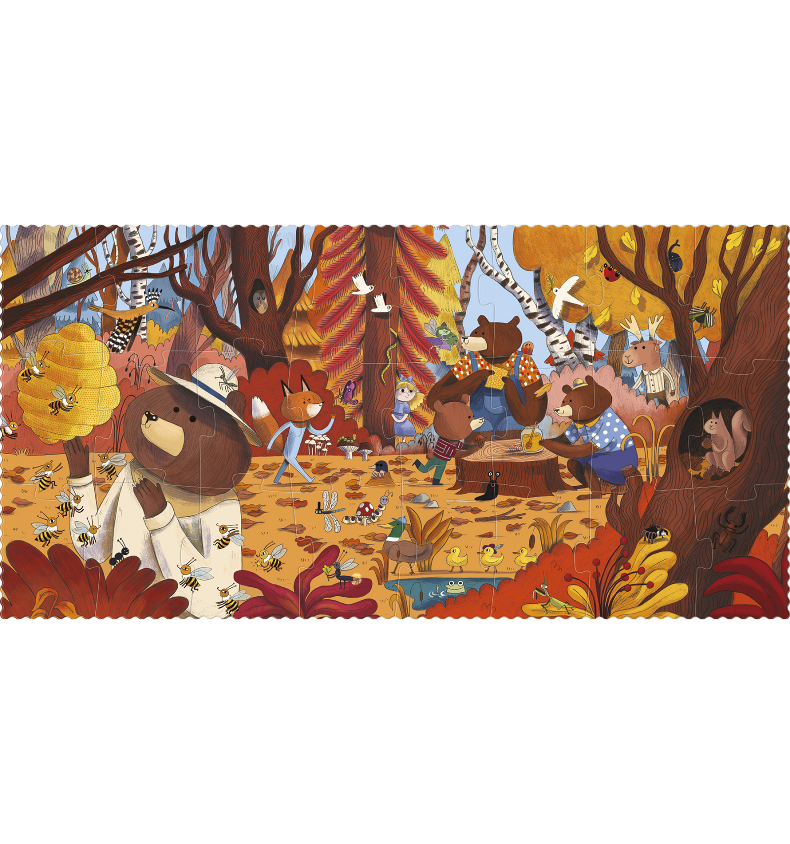 Explora el bosc amb els nostres amics ossos i descobreix les criatures que els acompanyen mentre gaudeixen de la mel. Aquest trencaclosques de 24 peces per a nens petits inclou un divertit joc d'observació per a trobar 24 personatges amagats.