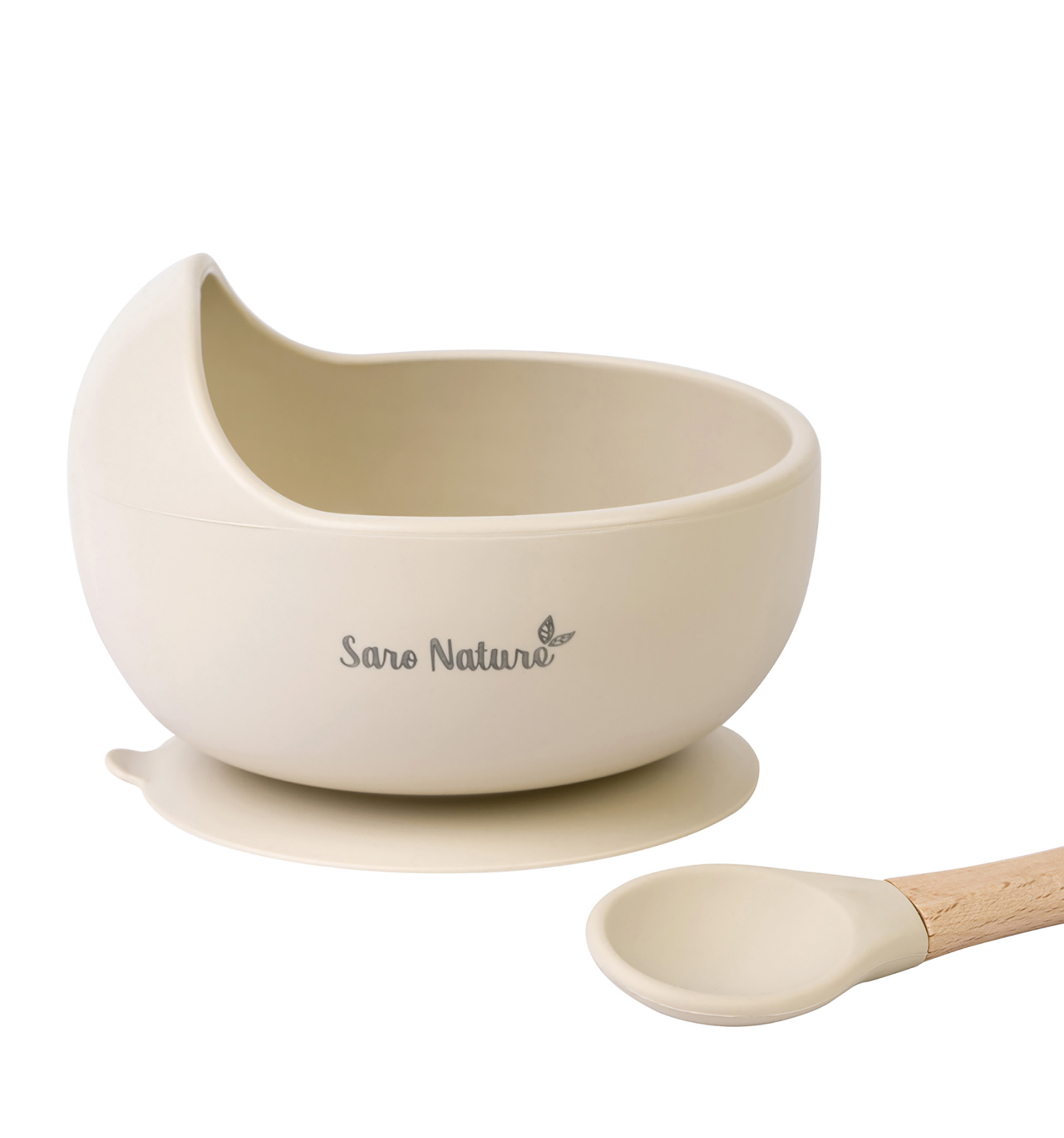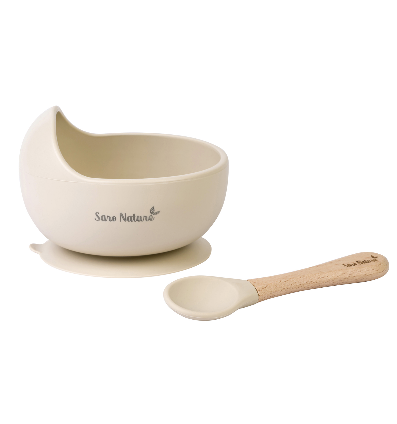 Com una ona. Un set d'alimentació en un munt de colors perfecte per a aprendre a menjar solet o soleta, gràcies a la seva paret prolongada en forma d'ona, que ajuda al fet que els nens aprenguin a agafar el menjar amb la cullera. A més, el bol s'agafa a la taula gràcies a la seva ventosa. Bol de silicona alimentària i cullera de fusta de faig.
