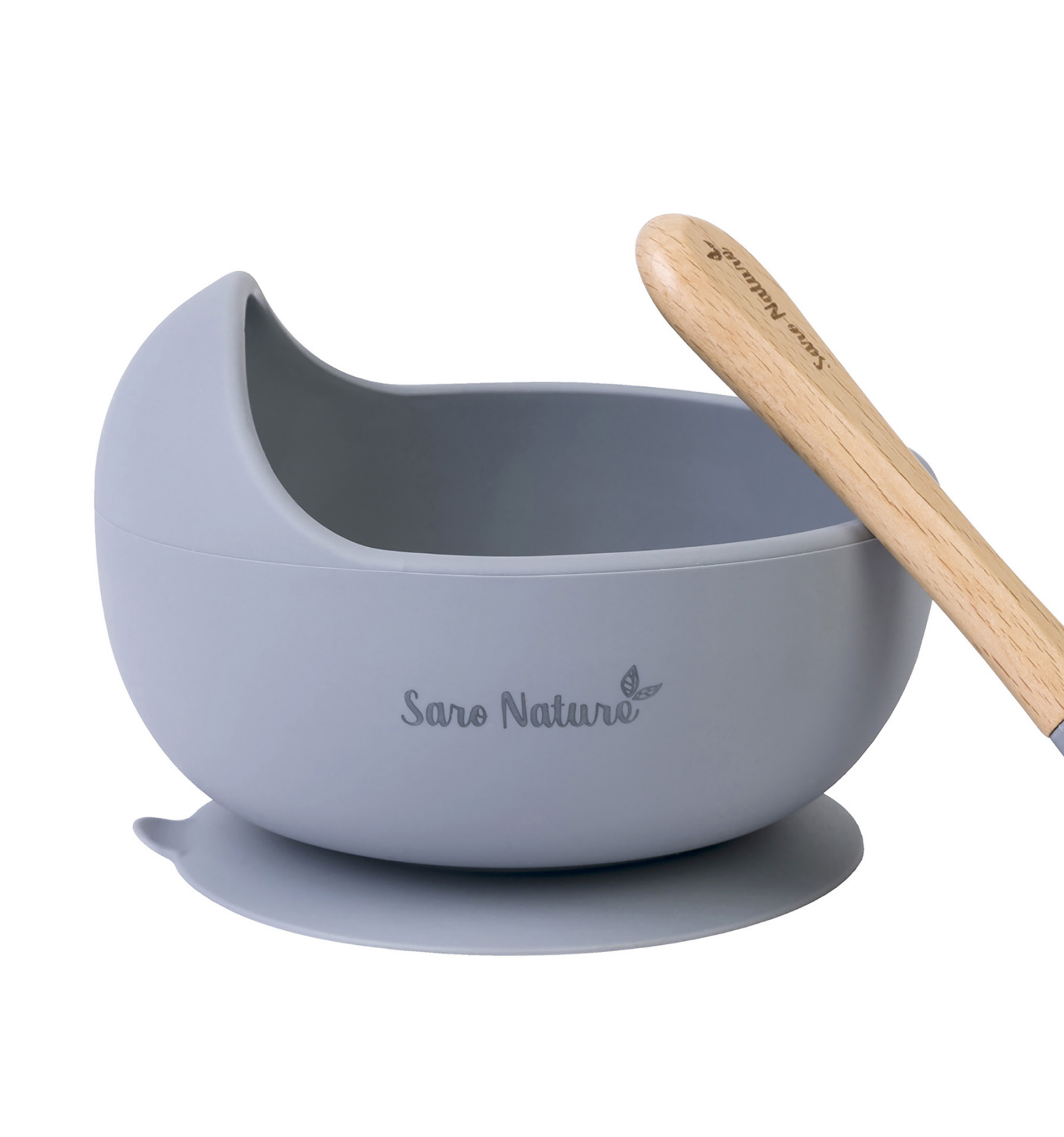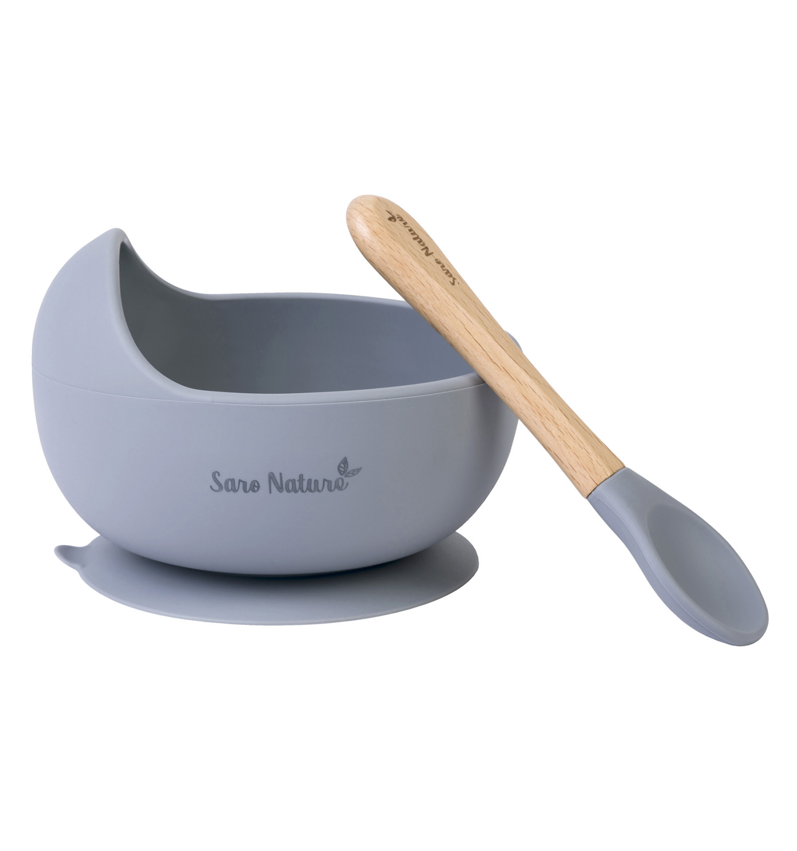 Com una ona. Un set d'alimentació en un munt de colors perfecte per a aprendre a menjar solet o soleta, gràcies a la seva paret prolongada en forma d'ona, que ajuda al fet que els nens aprenguin a agafar el menjar amb la cullera. A més, el bol s'agafa a la taula gràcies a la seva ventosa. Bol de silicona alimentària i cullera de fusta de faig.