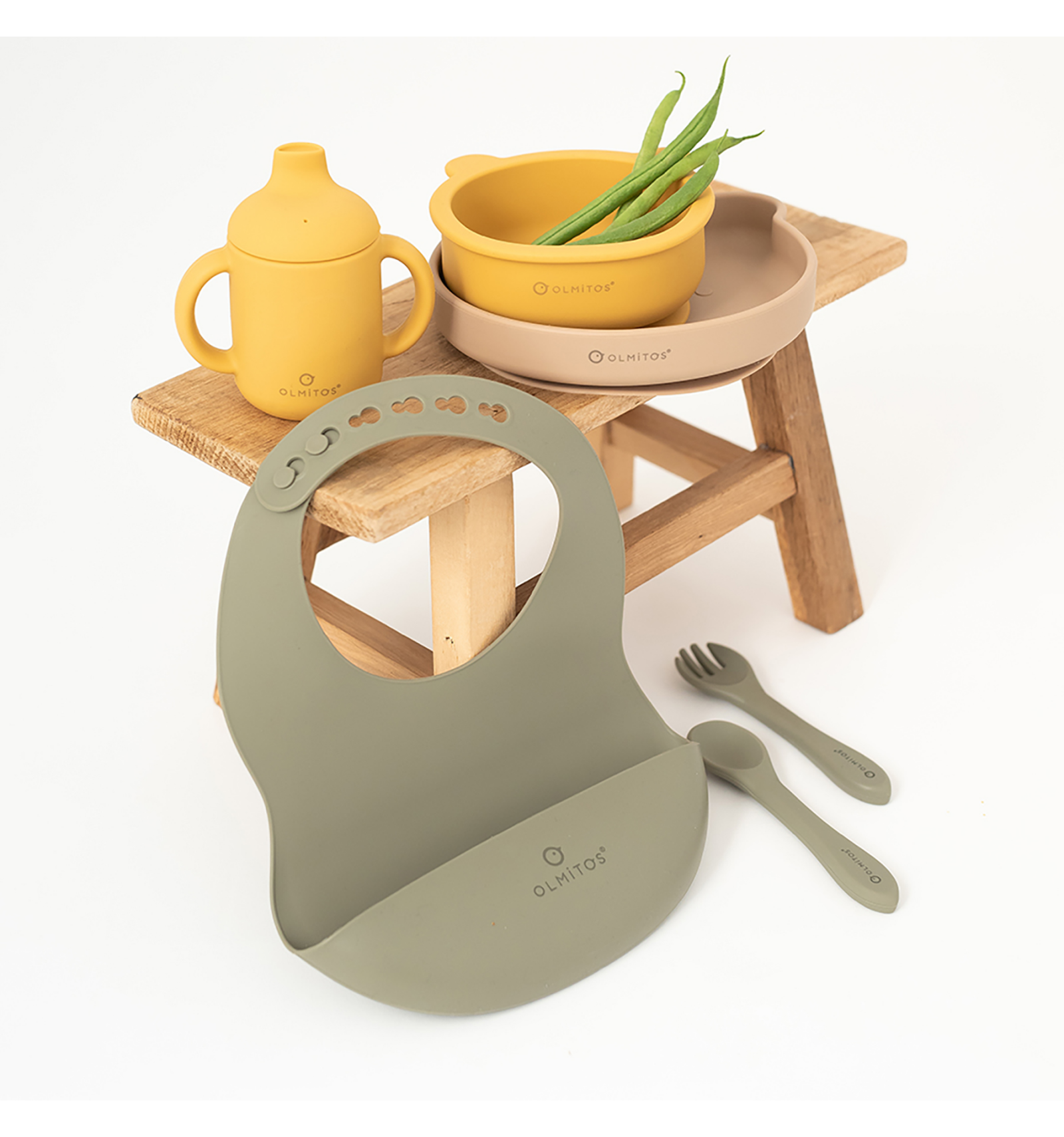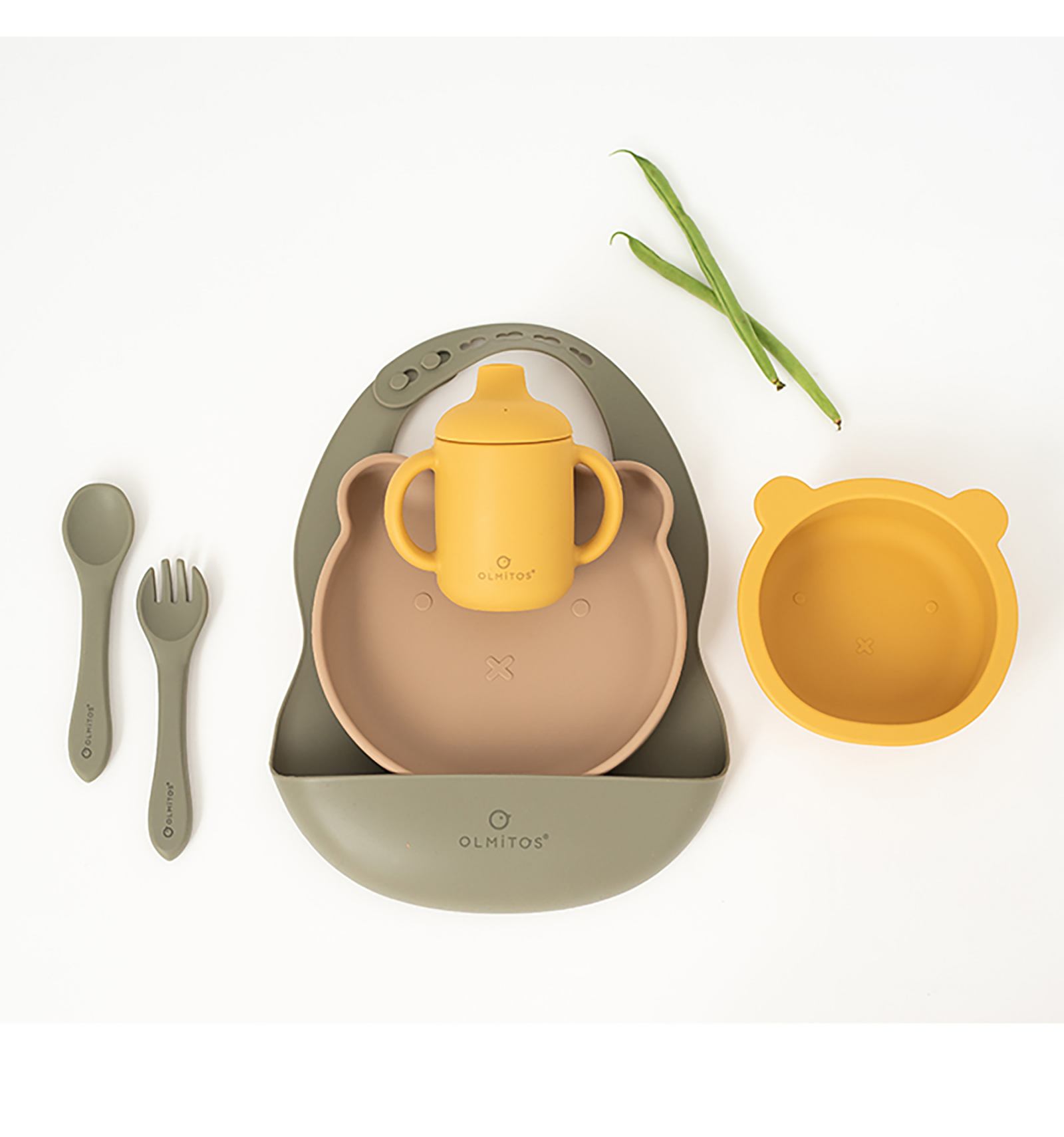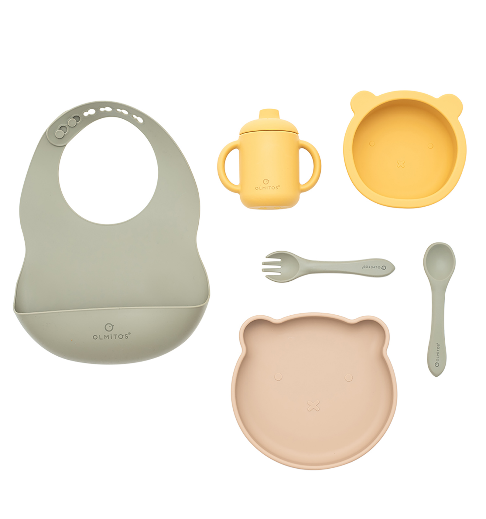 L'hora de menjar mai va ser tan fàcil i divertida! La vaixella Olmitos de 7 peces de silicona està dissenyada per a acompanyar les primeres bocades del teu bebè amb estil, seguretat i practicitat.