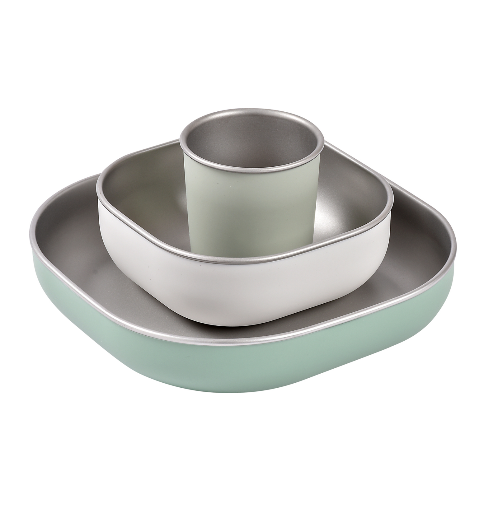 Set complet: Inclou un plat ergonòmic, un bol i un got petit.