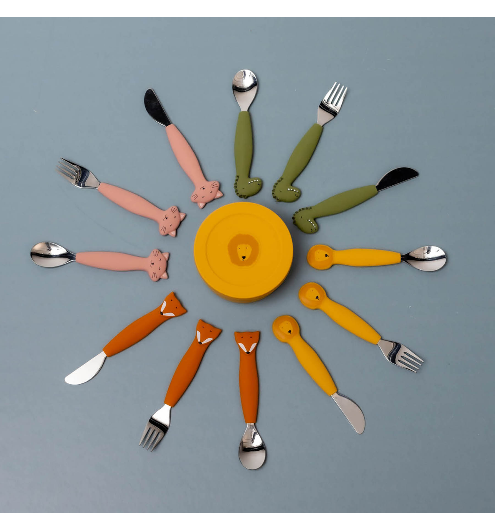 Menjar solet és més fàcil i divertit amb aquests coberts d'animalons! Suaus, segurs i amb mànecs fàcils d'agarrar, estan fets per a les mans petites i per a aprendre a menjar amb confiança.