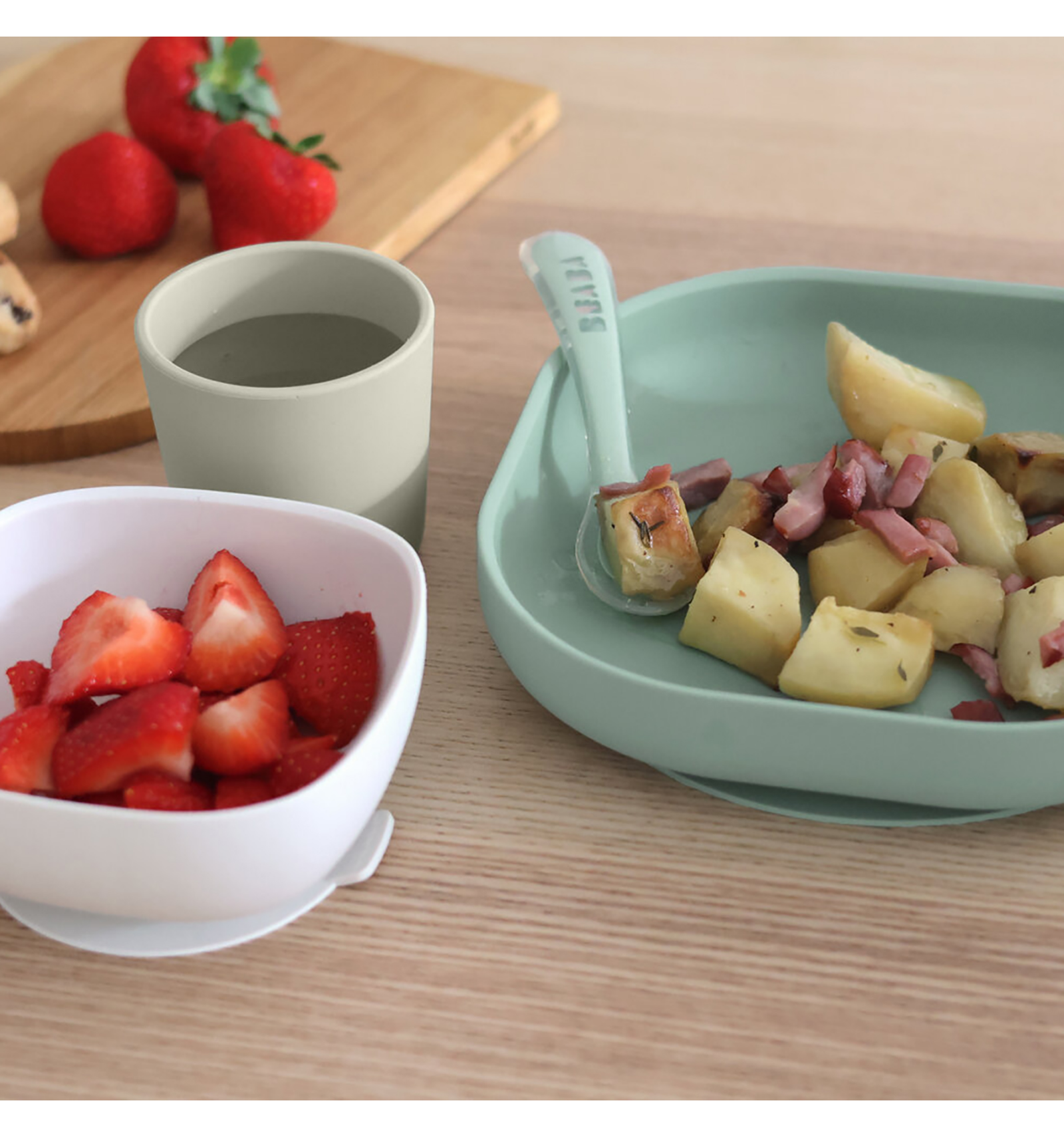 Deixa que els teus fills mengin solos sense perill que volin plats i es trenquin amb la vaixella de silicona amb ventosa de Béaba que s'adhereix a les superfícies llises, reduint incidents i soroll durant els menjars.