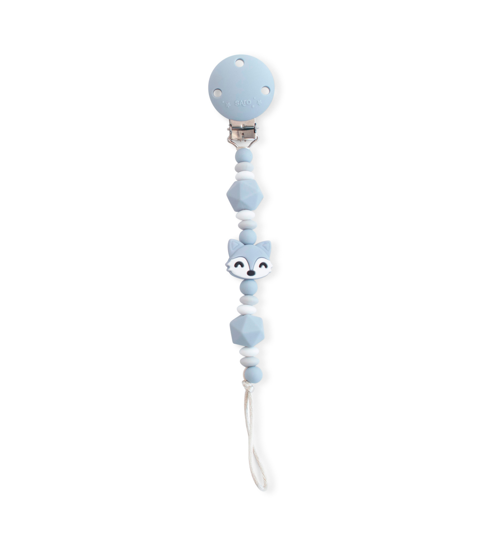 Pràctic i bonic portaxumets de Saro. Fet de silicona alimentària, antibacteriana i eco friendly, perquè el teu petit pugui rosegar-lo i brincar amb ell. A més, el portaxumets subjectarà el xumet preferit del teu petit a la seva robeta perquè no el perdi mai.