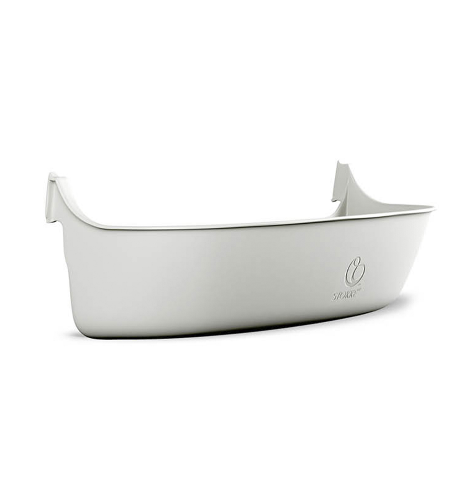 Soporte de almacenaje de la Tripp Trapp de Stokke. Para que los padres guarden los baberos o para que los hijos dejen sus juguetes. Se acopla a la silla sin herramientas. Fácil de limpiar. Aguanta hasta 1 kg de peso. Tamaño: 41 x 12 x 17 cm.