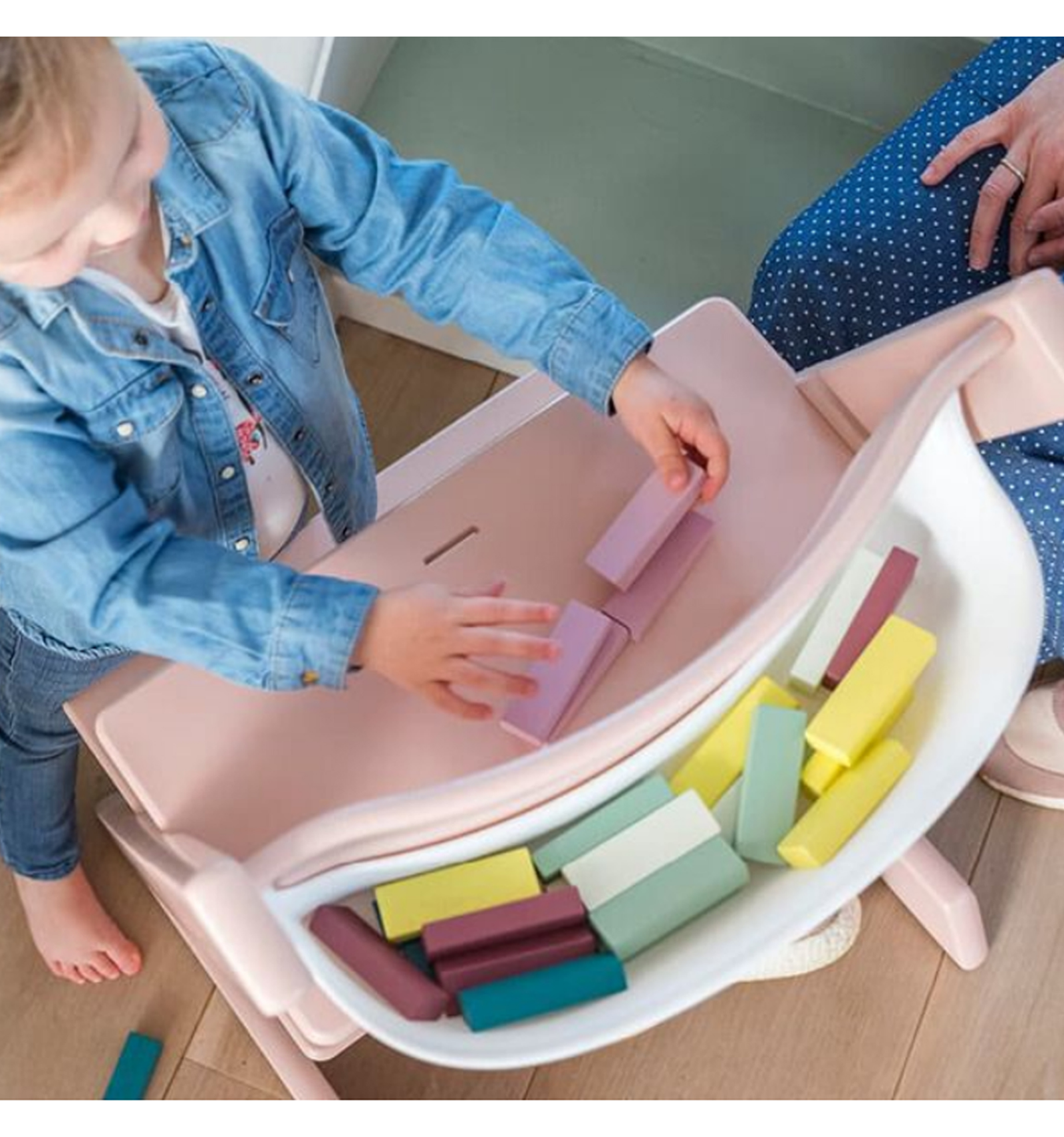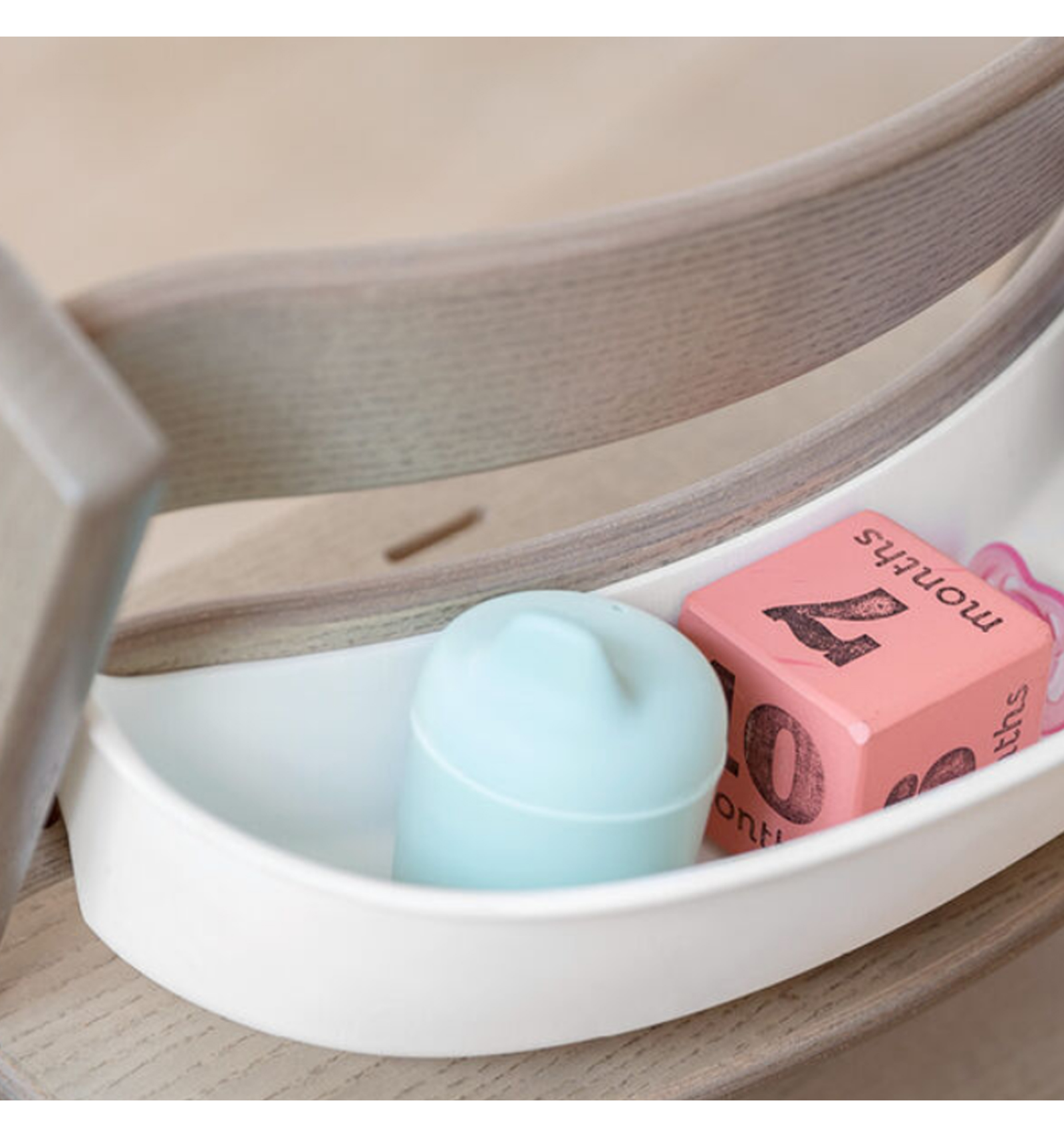 Diseñado para acoplarse perfectamente a la silla Tripp Trapp. Se puede retirar fácilmente de la silla y colocarse en el suelo o sobre la mesa.