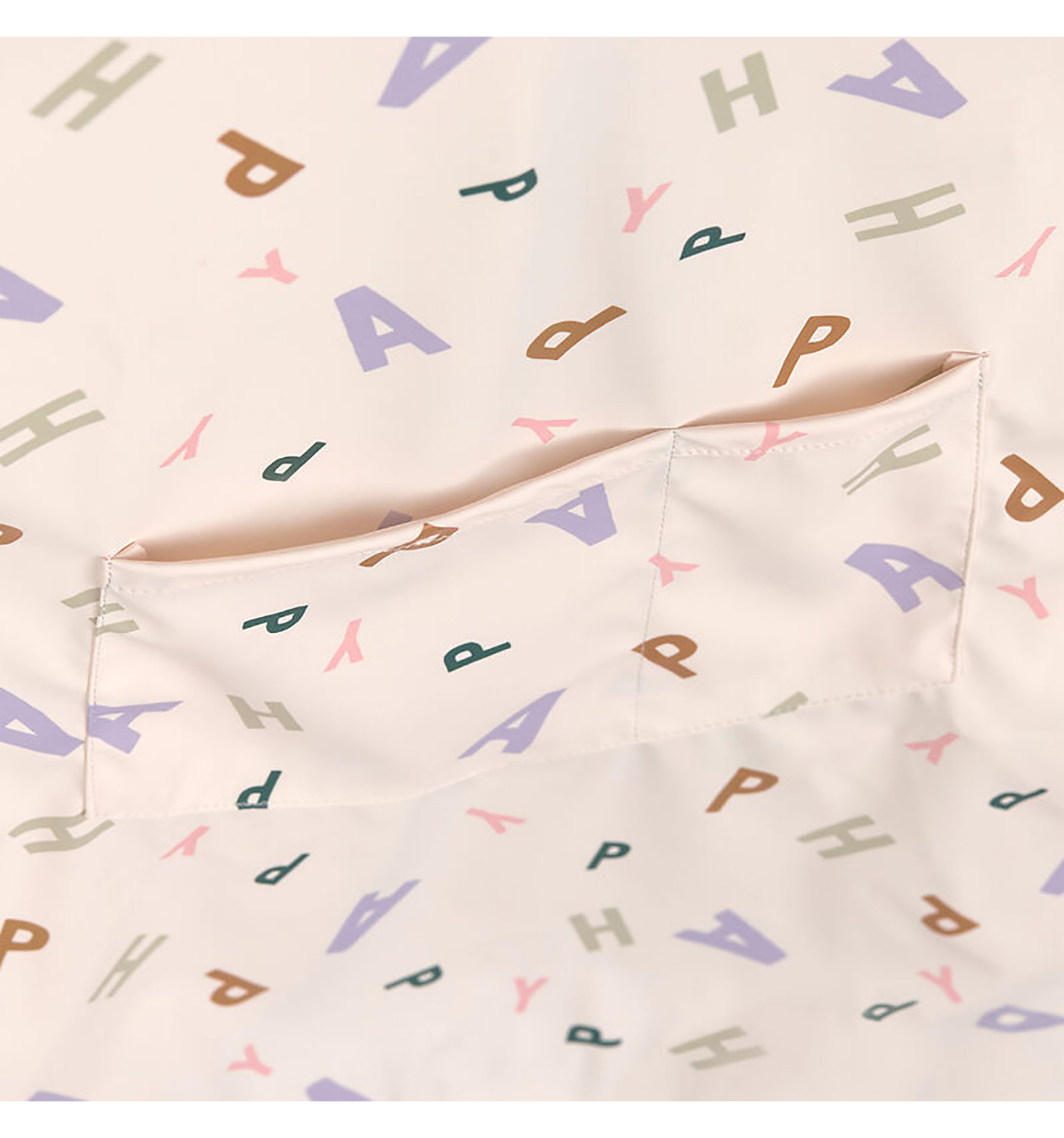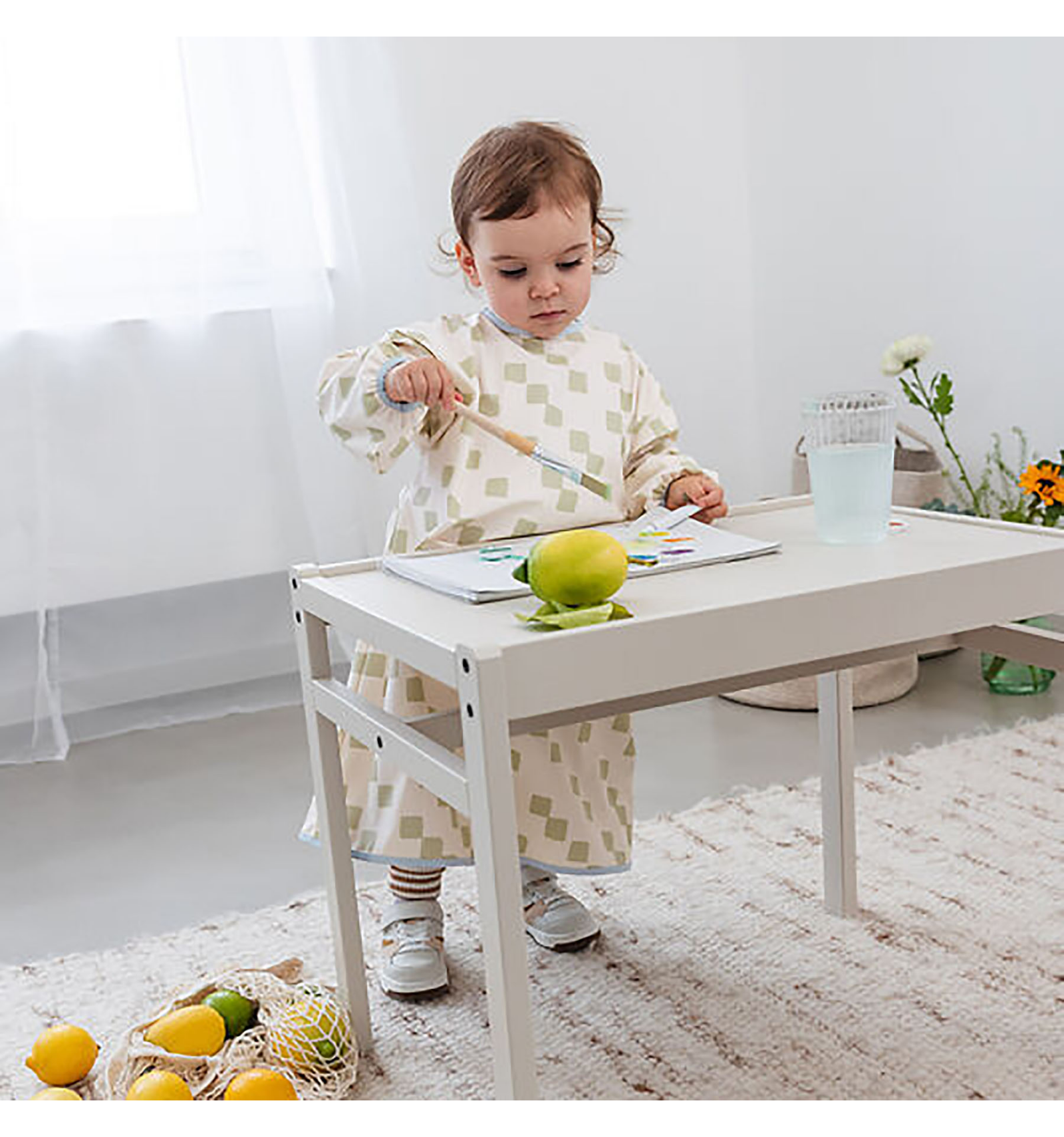 Babero impermeable de manga larga con bolsillo recogedor, ideal para proteger la ropa de tu peque durante comidas, manualidades y juegos.