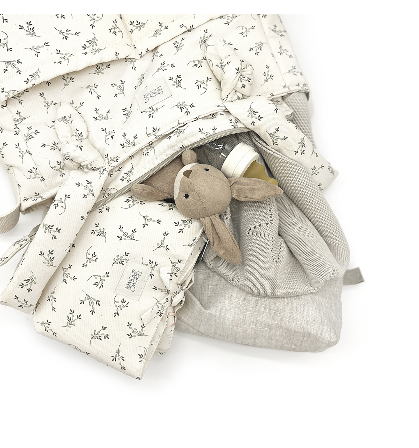 Con una capacidad de 15 litros, ofrece espacio suficiente para pañales, biberones, toallitas y otros imprescindibles del día a día. Está confeccionado en 100% algodón orgánico, un material natural y respetuoso con la piel del bebé, y fabricado en España, cuidando cada detalle de calidad y sostenibilidad.