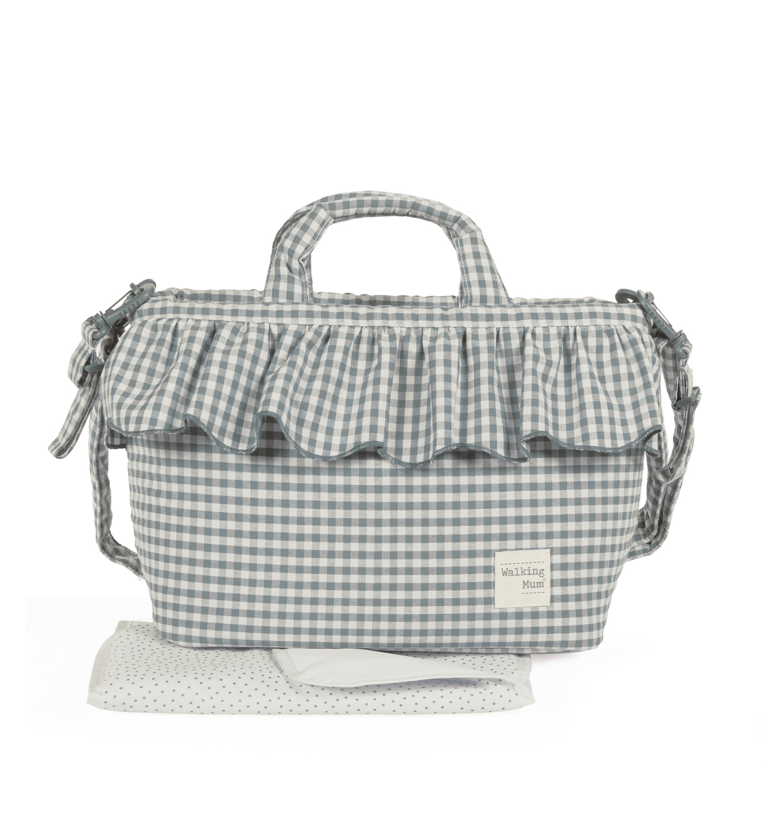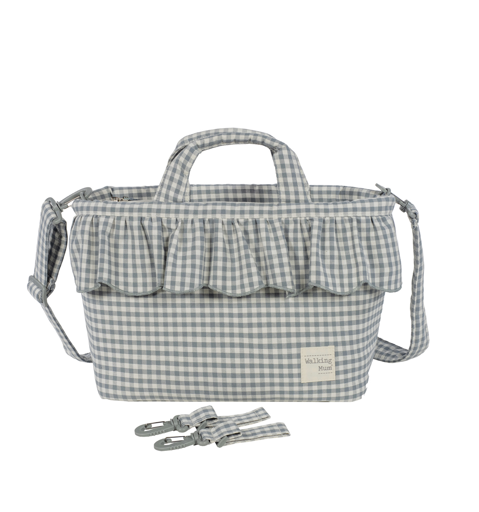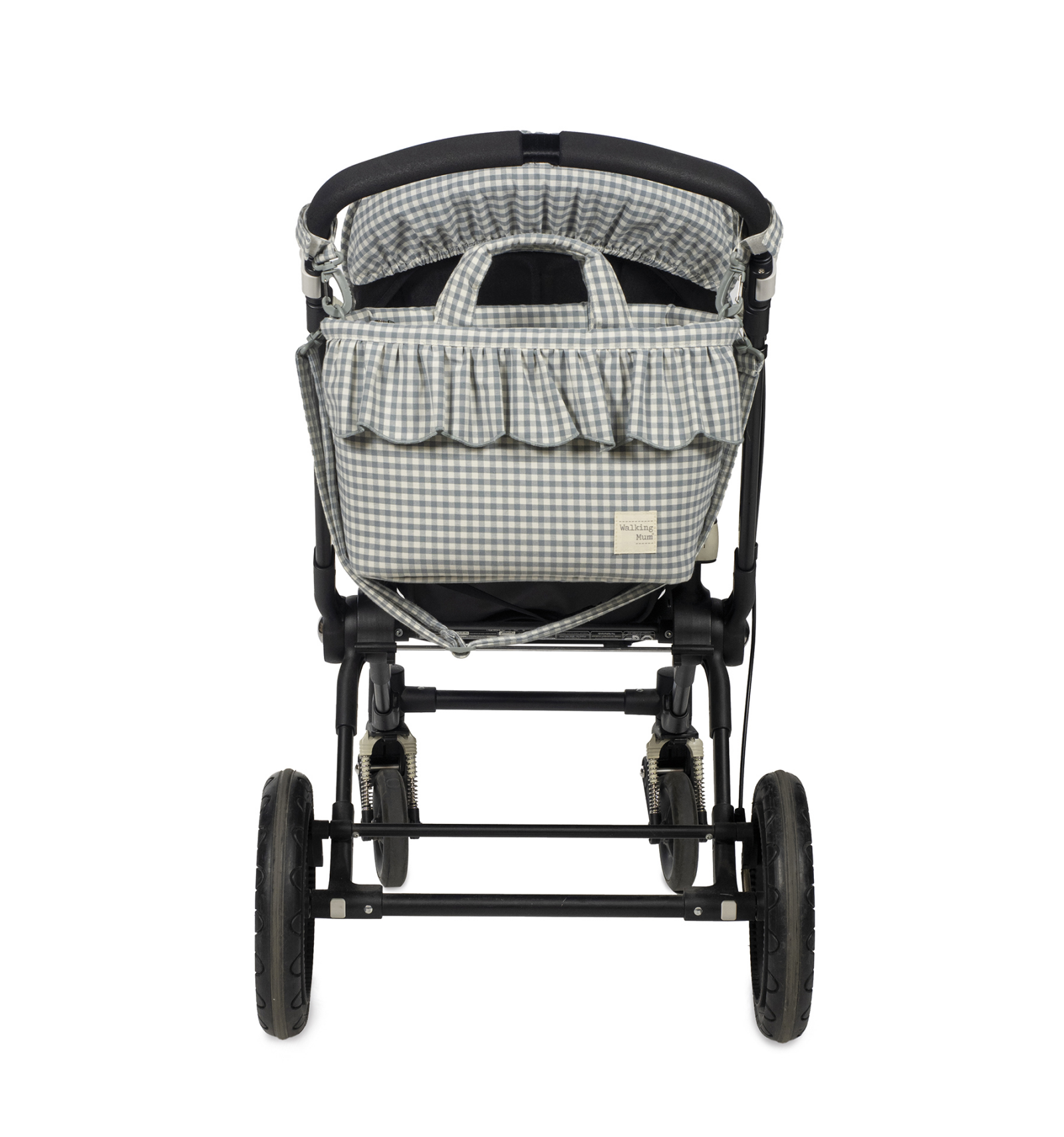 El bolso cambiador Praliné Vichy Matcha de Walking Mum es práctico, ligero y de gran capacidad. Incluye cambiador y múltiples bolsillos para organizar todo lo necesario del bebé. Con sistema universal para silla de paseo, tejido resistente y tratamiento water resistant, es ideal para el día a día.