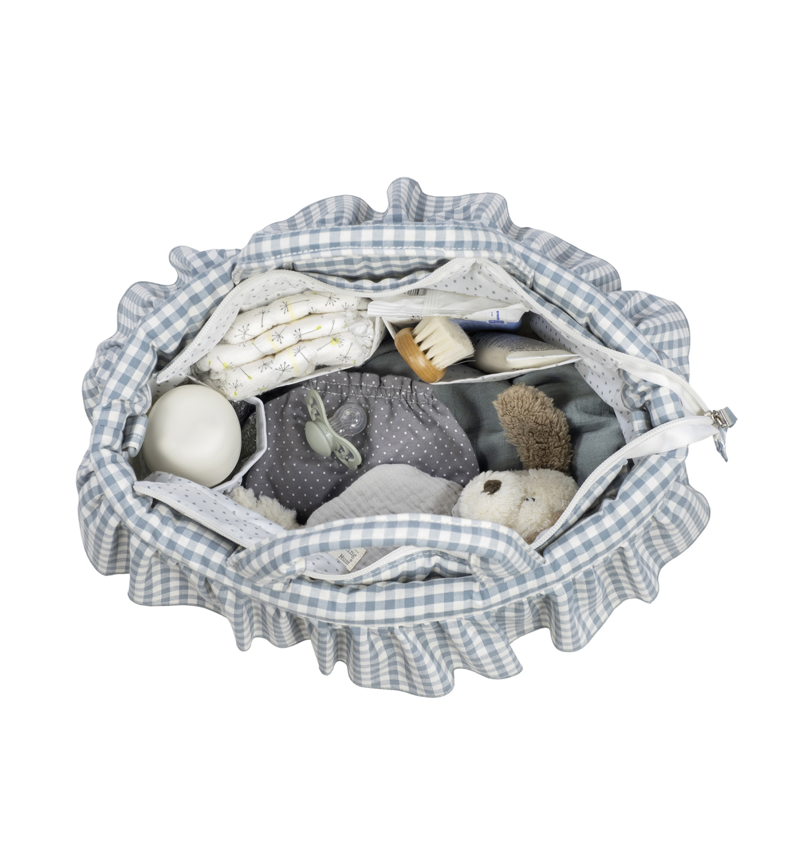 Esta bolsa canastilla para bebé destaca por su amplio espacio interior, ideal para llevar pañales, ropa, biberones y accesorios.