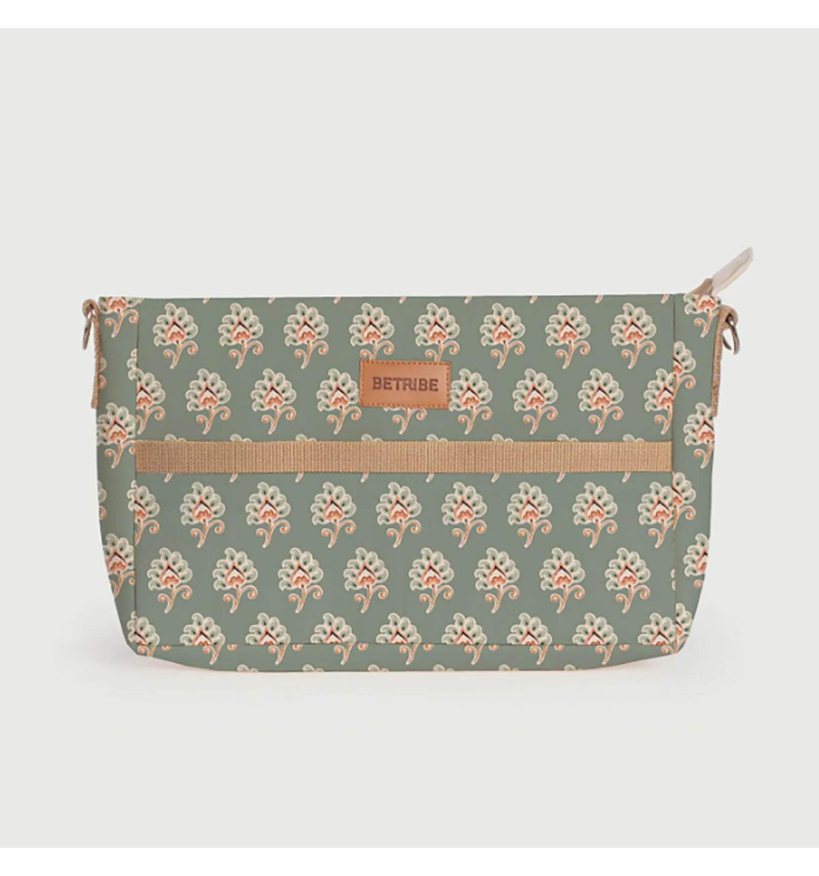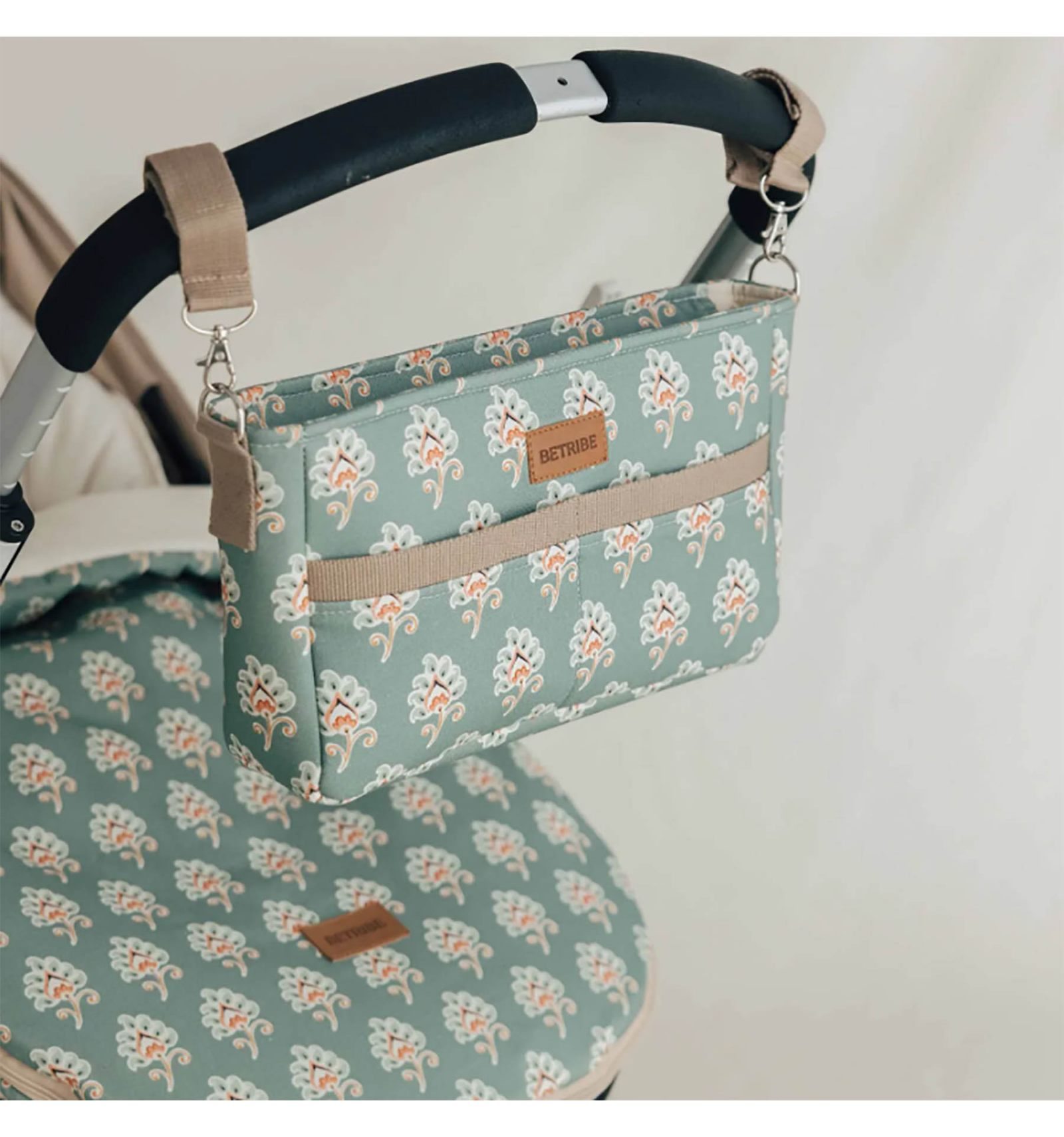 Fabricado con algodón 100% orgánico, este bolso es antimanchas y repelente al agua, lo que garantiza durabilidad y facilidad de limpieza. Además, su tamaño compacto es ideal para el uso diario, y cuenta con dos anclajes cortos para colgarlo en el carrito del bebé y un asa larga para usarlo tipo bandolera.