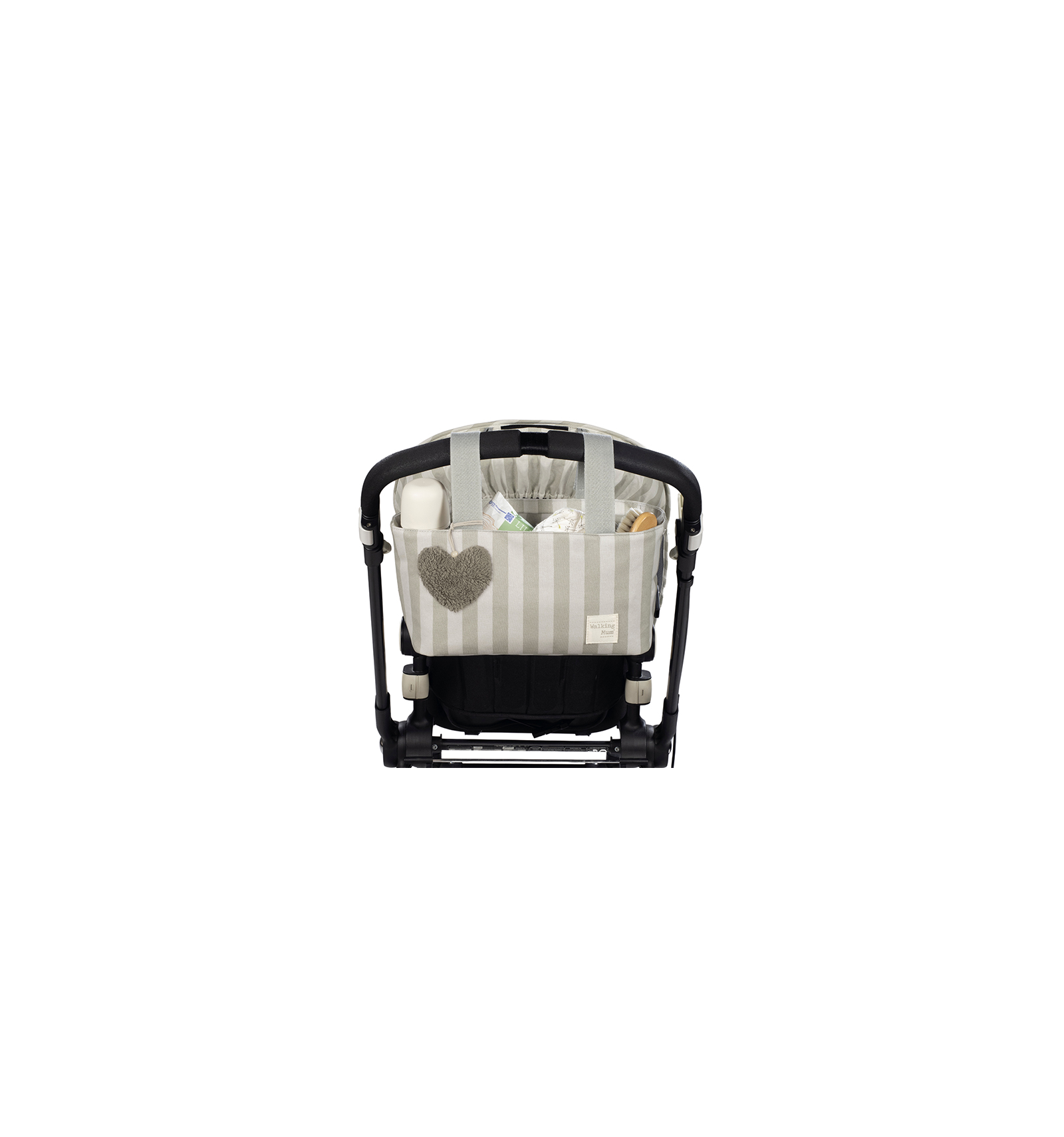 Asas cortas con cierre de velcro, que permiten colgarlo cómodamente del manillar del cochecito.