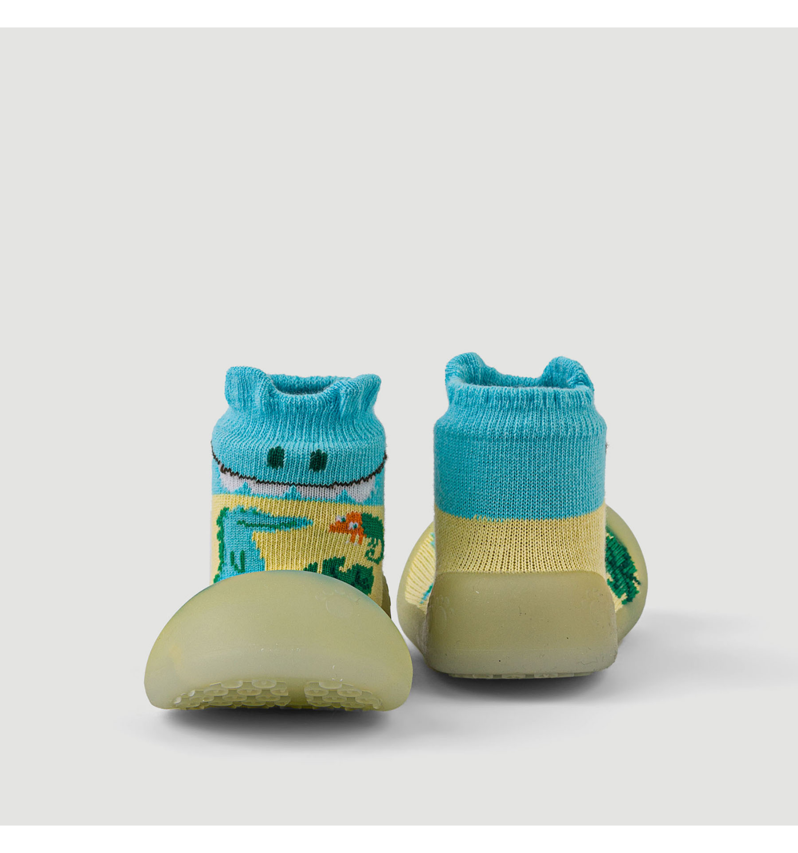 Fabricados en algodón con suela de TPE, son transpirables, no tóxicos y recomendados por podólogos como la mejor alternativa cuando no es seguro caminar descalzo. Su diseño permite que el bebé se sienta en el suelo con la planta del pie, favoreciendo su equilibrio y capacidad de reacción.