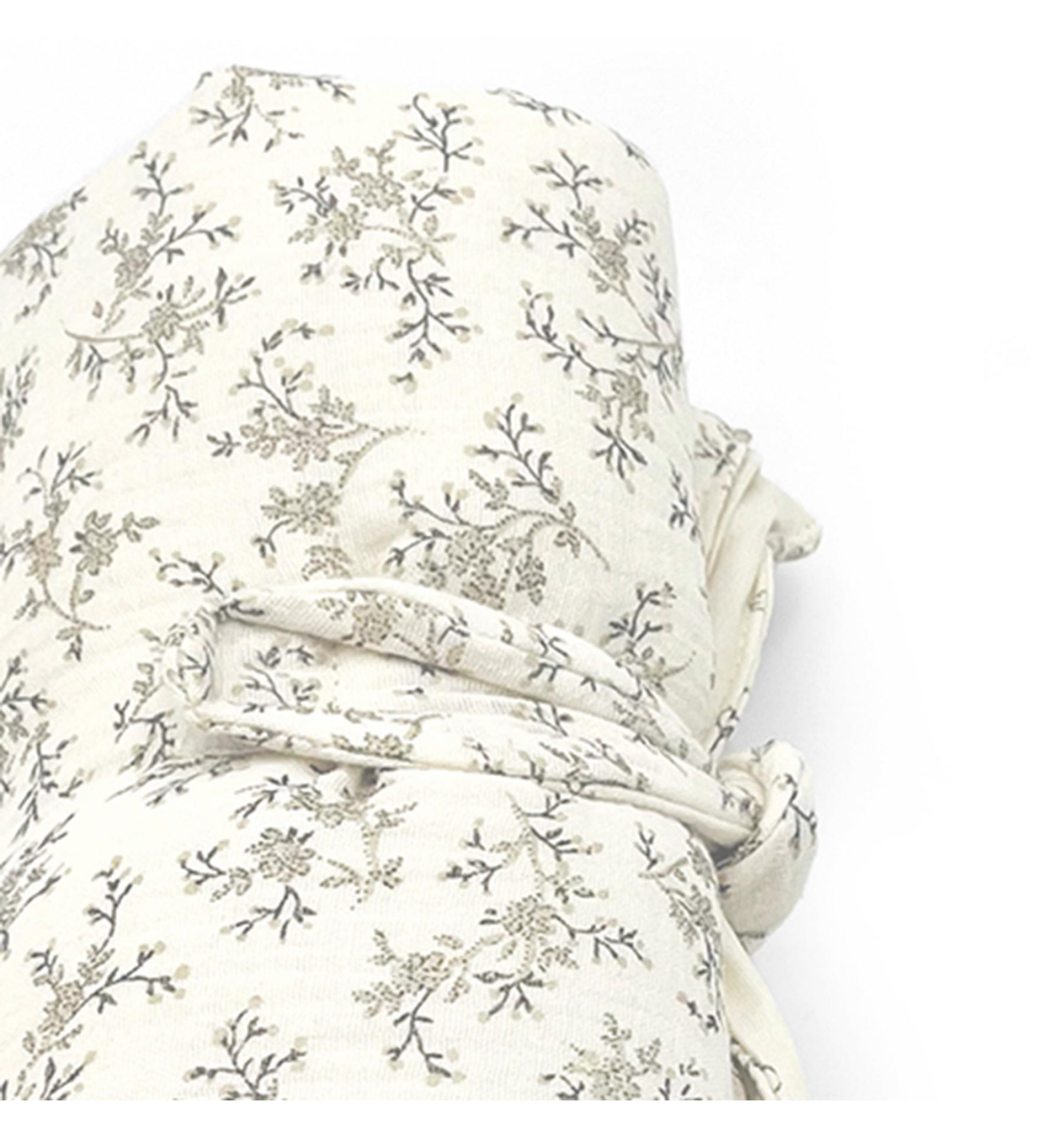 Relleno acolchado esponjoso e interior plastificado. Tejido exterior en lino estampado. Cierre de velcro.