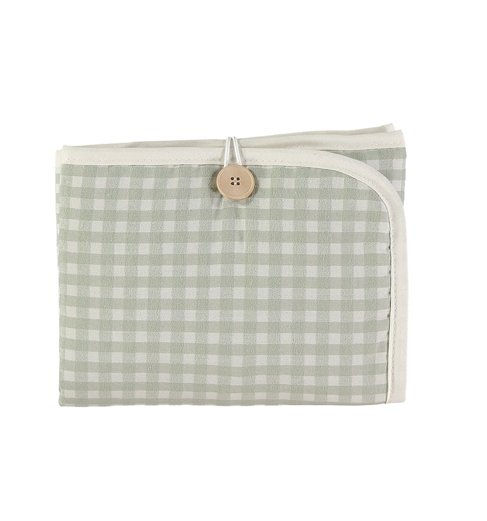Gracias a su cierre con botón de madera, el cambiador se pliega fácilmente, ocupando poco espacio y permitiendo llevarlo en el bolso o tenerlo siempre a mano. Es el accesorio perfecto para las rutinas del bebé, tanto en casa como en los paseos.