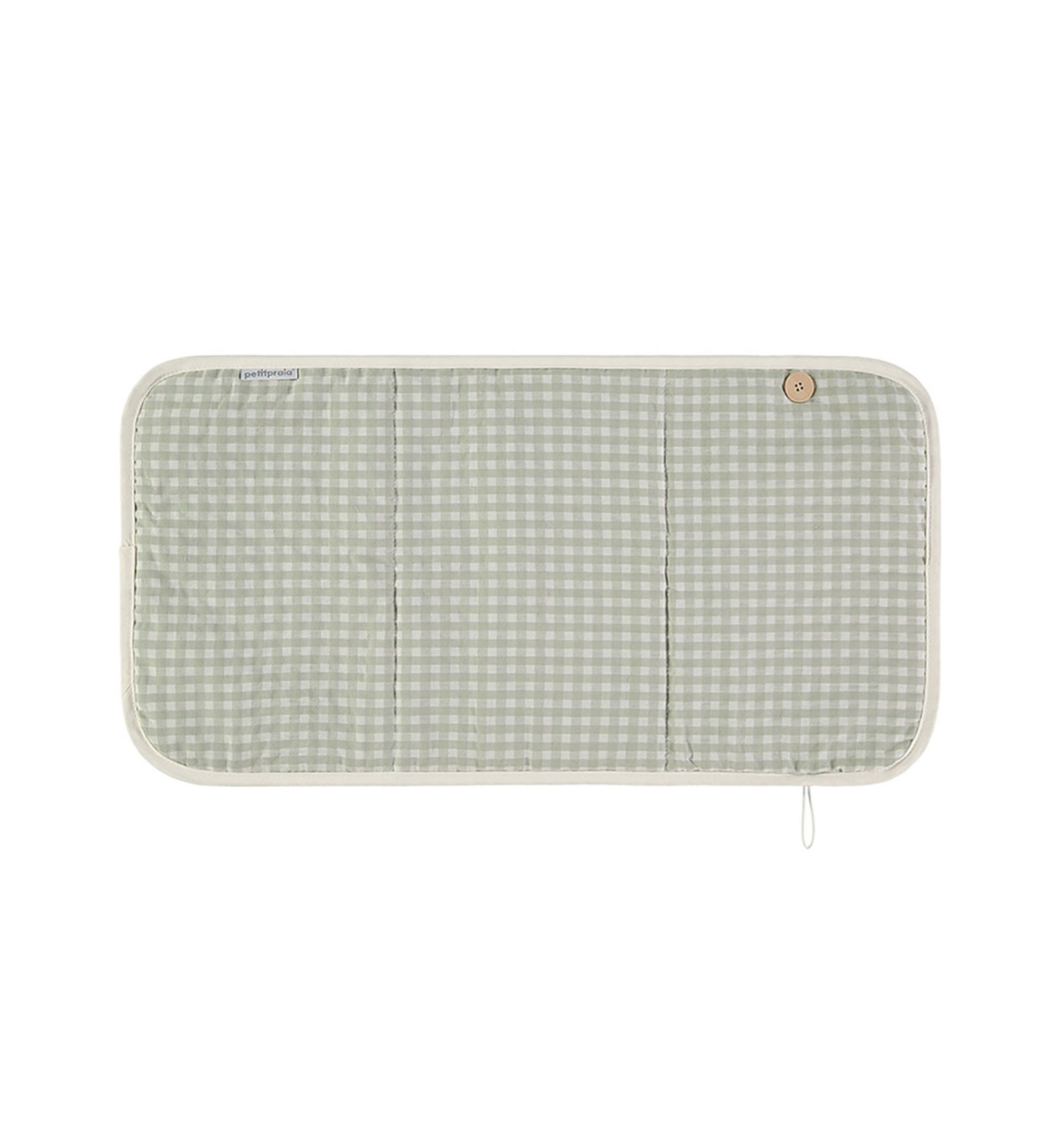 Práctico cambiador Petit Praia fabricado con algodón orgánico y poliéster reciclado. Ideal para cambiar al bebé en casa o de viaje. Su interior impermeable y su cierre con botón de madera lo hacen funcional y elegante. Diseñado y producido en Barcelona.