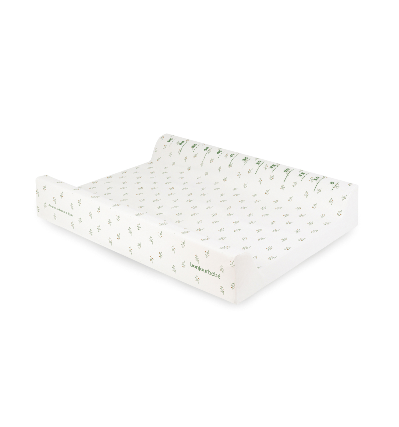 Este cambiador de Bonjourbebé es de PVP para facilitar así su limpieza. Los laterales son elevados y en uno de ellos tienes un medidor para ir comprobando el crecimiento de tu bebé.