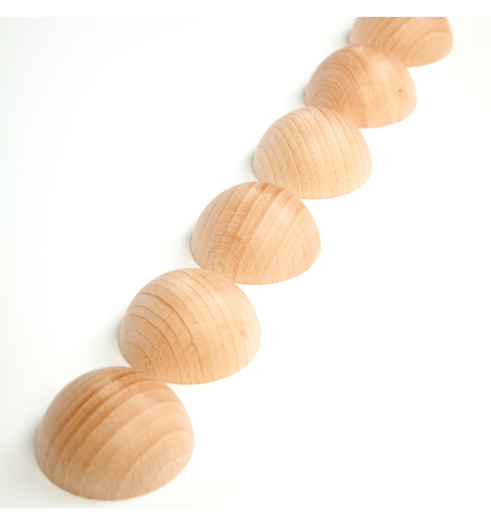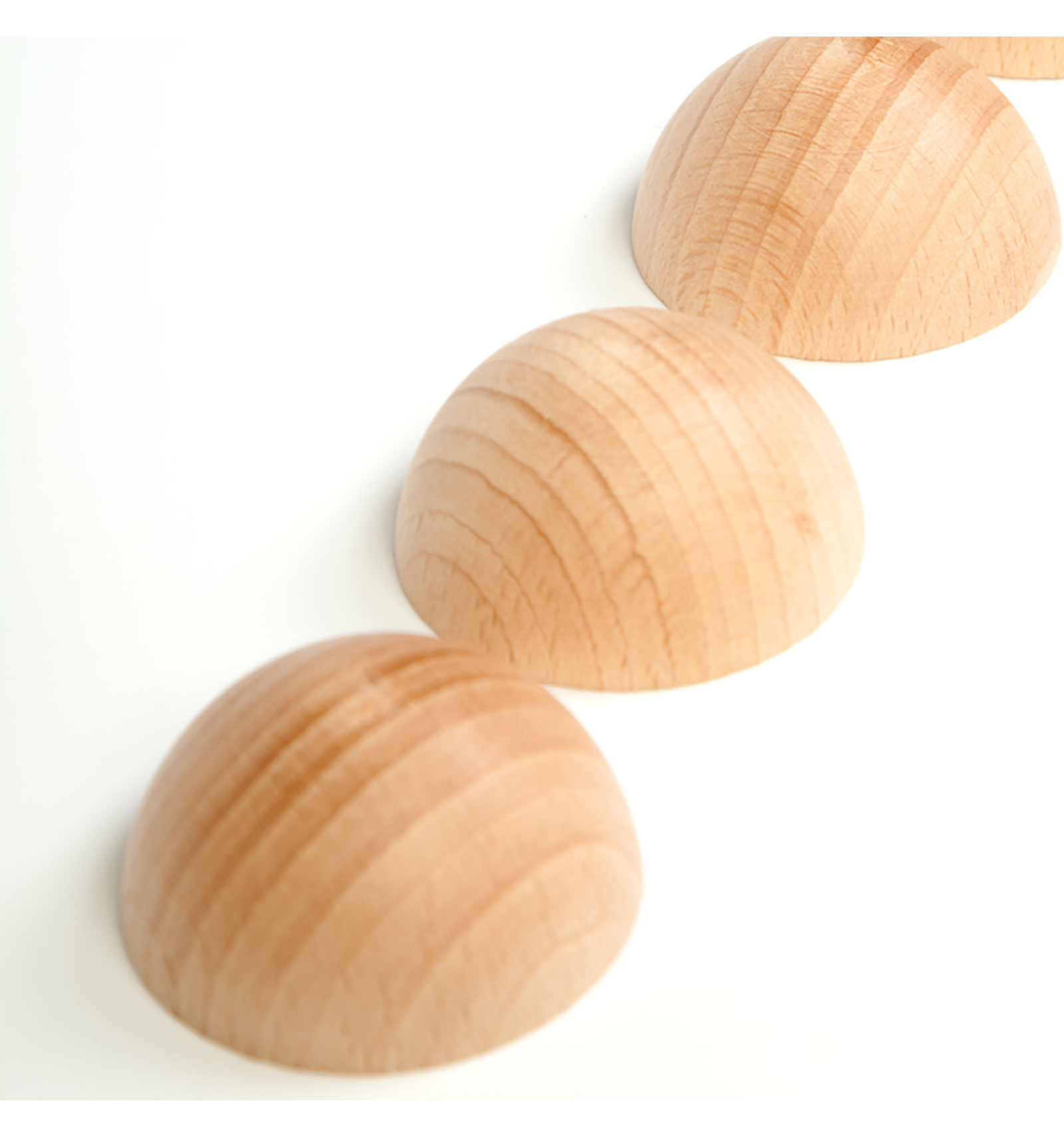 Ponla así o así, hazla girar, junta dos medias esferas y forma una redonda,... Esta esfera de madera de haya es ideal para la cesta de los tesoros ya que permite experimentar con las texturas de la madera, jugar libremente, pintarla,... Como todas las piezas de Grapat, favorecen el pensamiento creativo y divergente, siguiendo la pedagogía Waldorf.