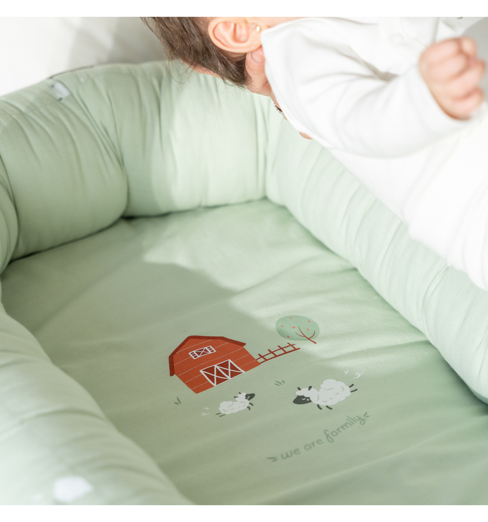Brinda a tu bebé un descanso seguro y placentero con el nido de colecho evolutivo de Bonjourbébé. Su diseño ergonómico simula el acogedor entorno del útero materno, ofreciendo al recién nacido una sensación de protección y calma.