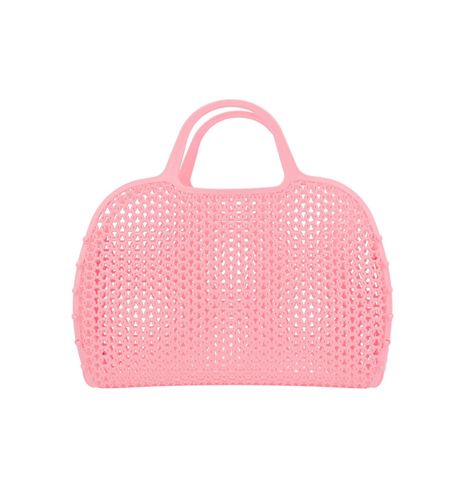 La bolsa de verano de rejilla es ligera, práctica y perfecta para playa o piscina. Fabricada en plástico reciclable, combina con todos tus looks.