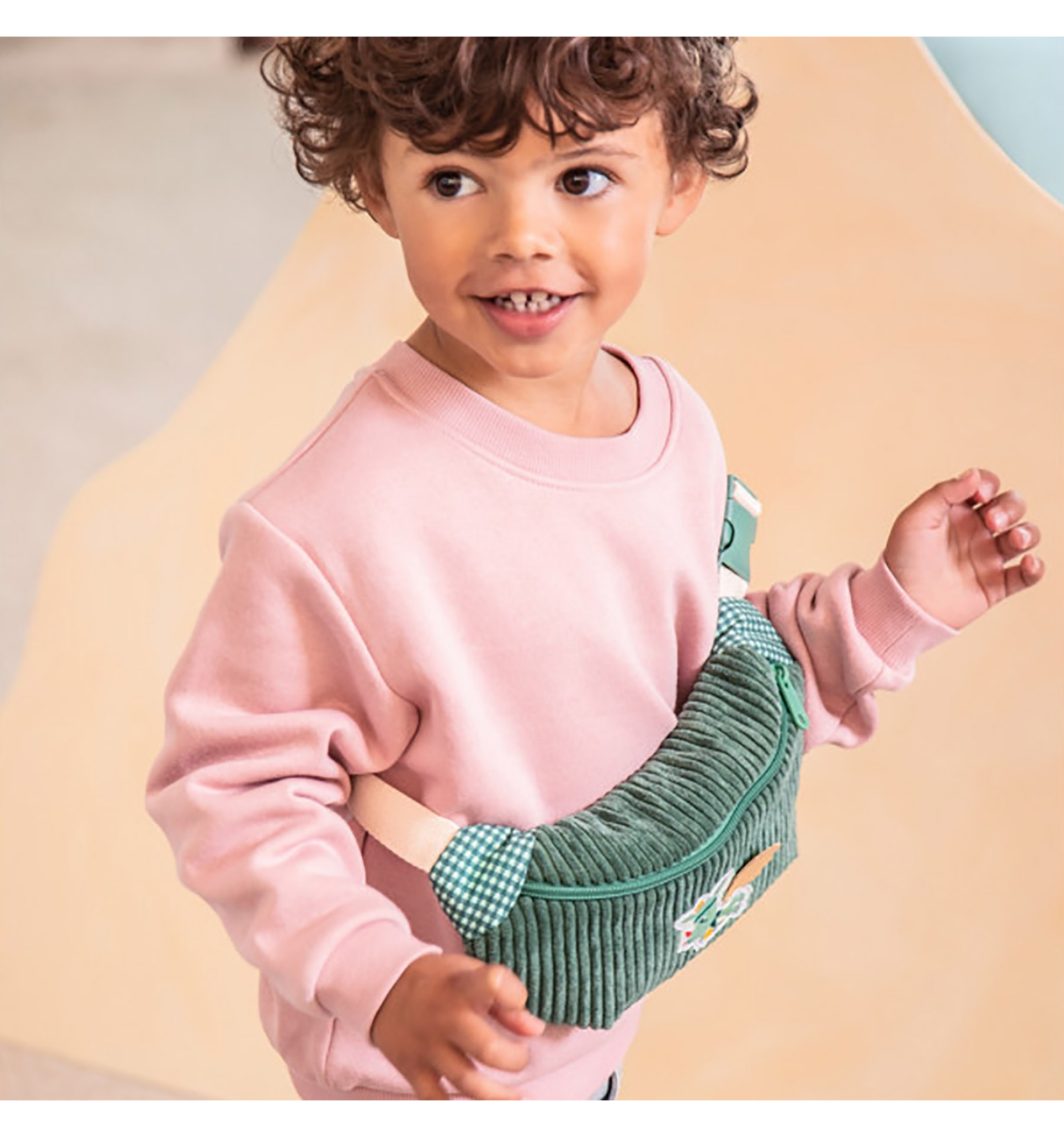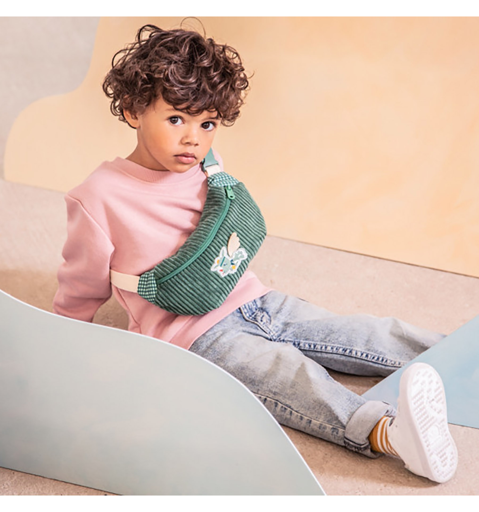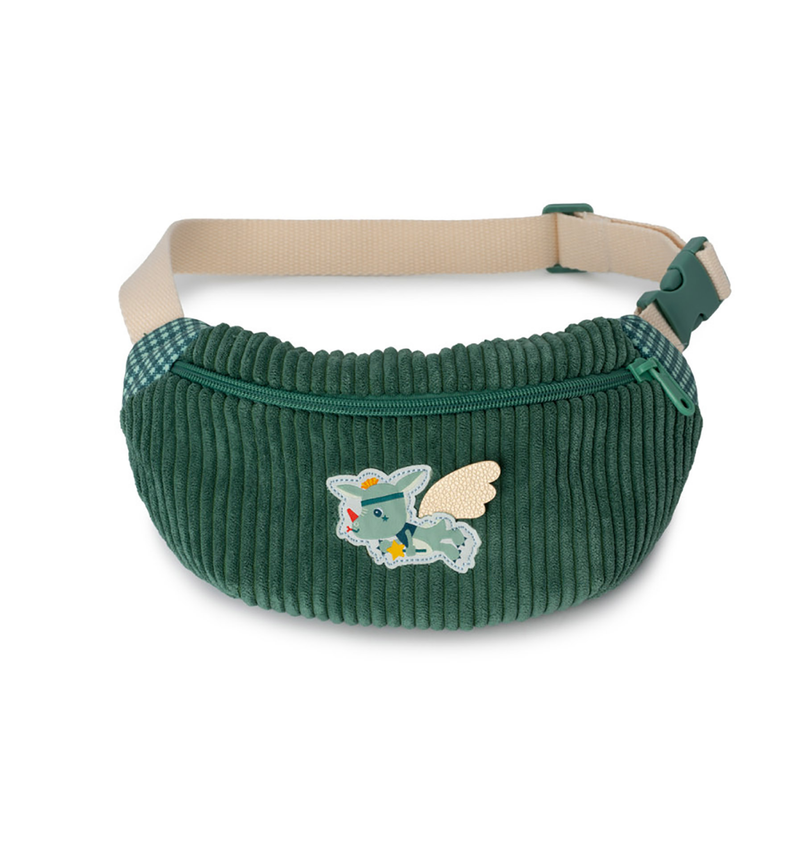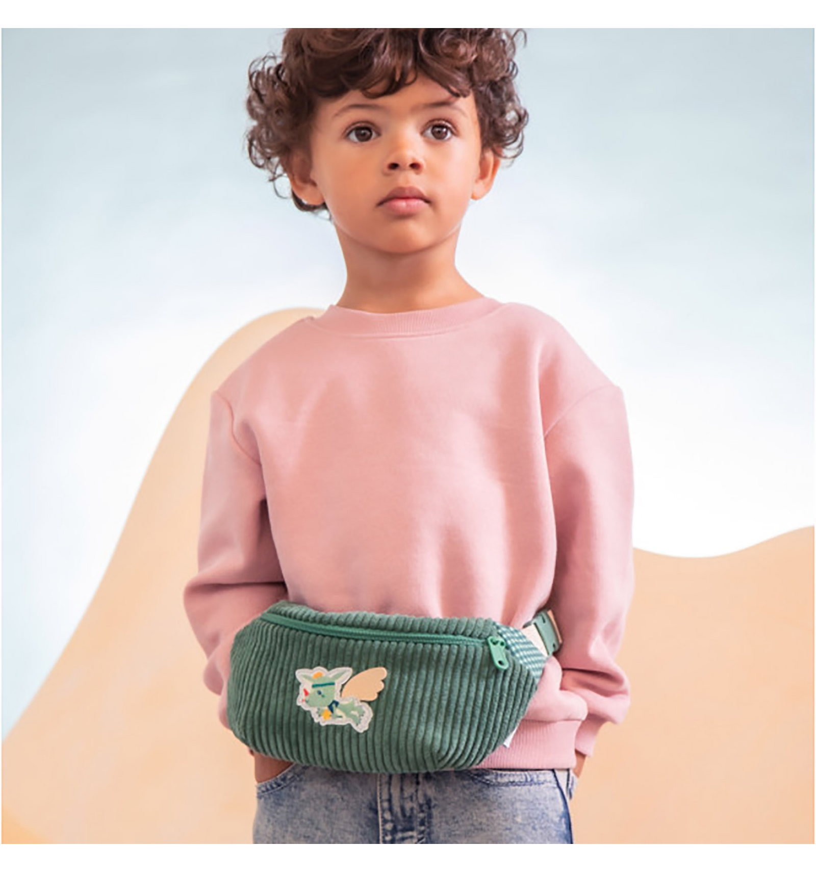 Esta encantadora riñonera de pana es el complemento perfecto para los conjuntos de las pequeñas de la casa. Con un diseño único, Joe, a la moda con sus llamativas alas doradas, cuida de los tesoros más preciados mientras las niñas disfrutan de sus aventuras.