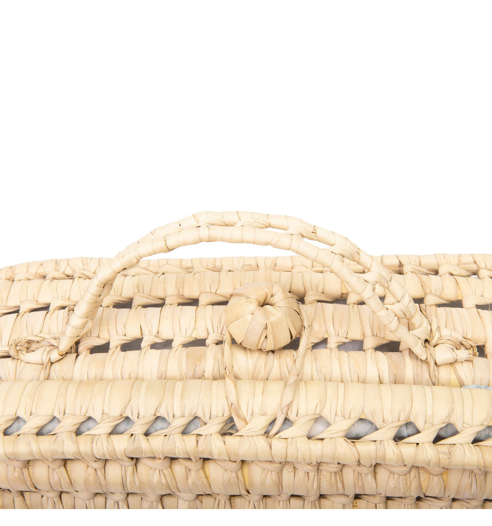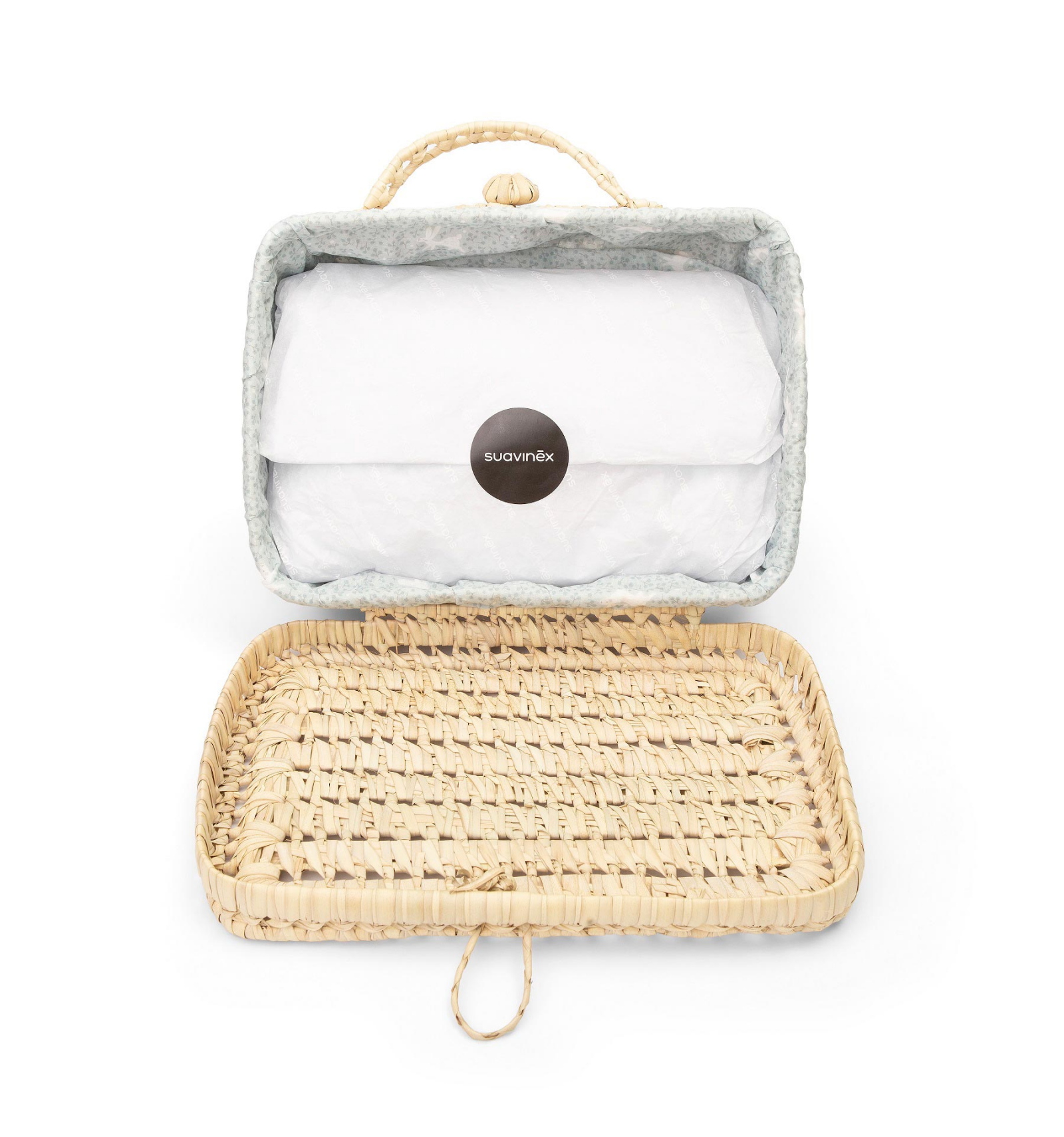 ¿Buscas un regalo práctico y que enamore? ¡Esta maleta de hojas de palma tejida a mano es lo que buscas! Incluye un pack de cosmética pediátrica con ingredientes de origen natual.