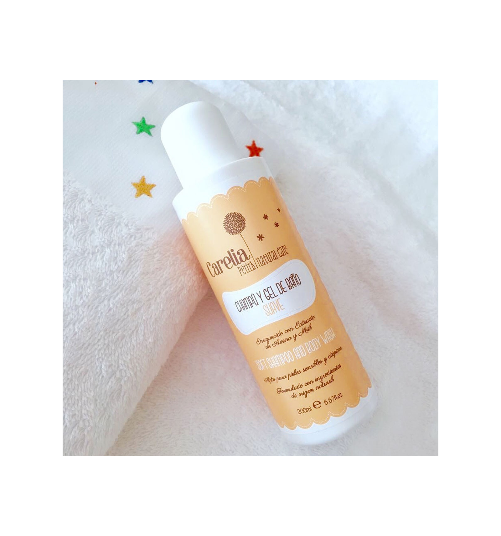 Jabón sin jabón para la hora del baño. Champú y gel suave a base de avena, caléndula, miel y bisabolol para mimar la piel más sensible, seca o irritable. Para un baño delicado y relajante de pies a cabeza, desde el primer día. Envase recargable con la recarga eco de Carelia disponible en La Panxamama. 200 ml.