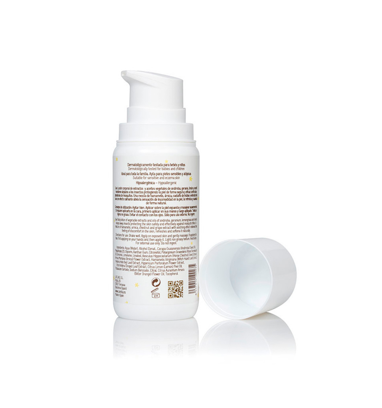 Formulada con una combinación de aceites de andiroba, geranio, limón y nerolí que protege la piel más sensible de forma segura y eficaz contra las picaduras, manteniendo alejados a los mosquitos. Enriquecida con hamamelis, árnica, castaño de indias y extracto de uva con efecto calmante para refrescar y suavizar la piel delicadamente. Con una dosis adicional de hidratación.